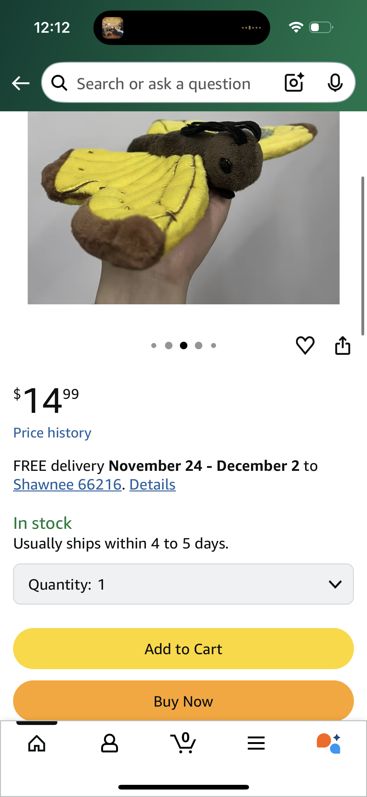 11.8'' Realistic Butterfly Plush - Yellow Butterfly Stuffed Animal - Cute Moth Animal Plushie Pillow