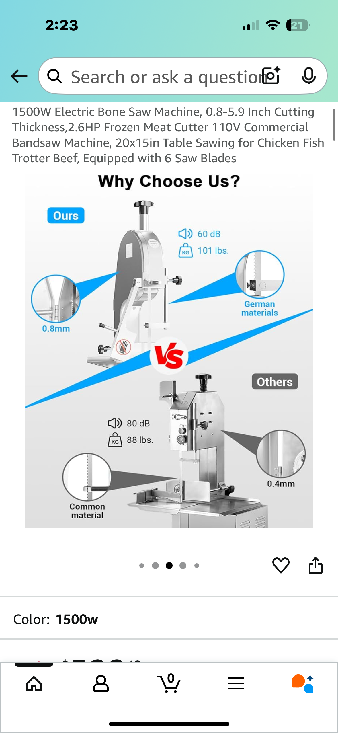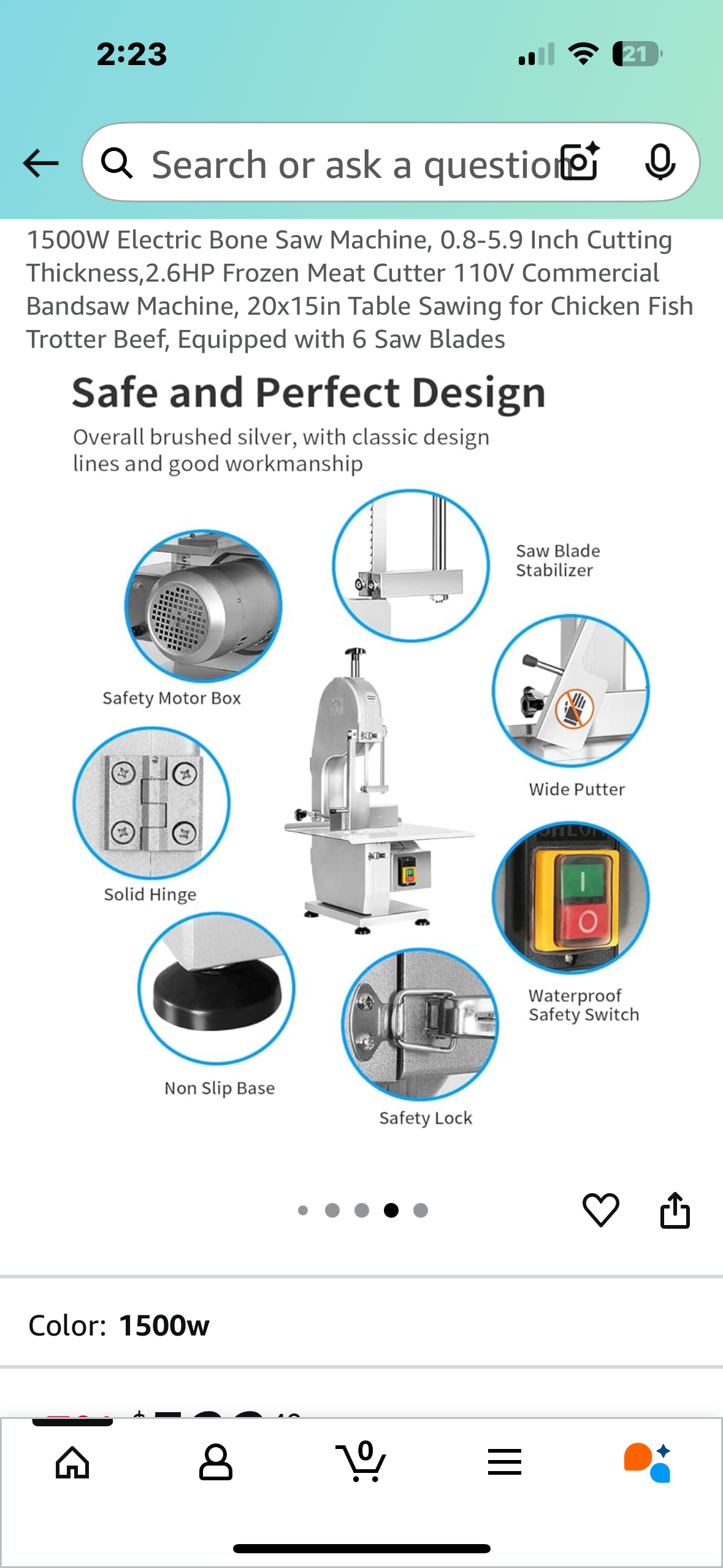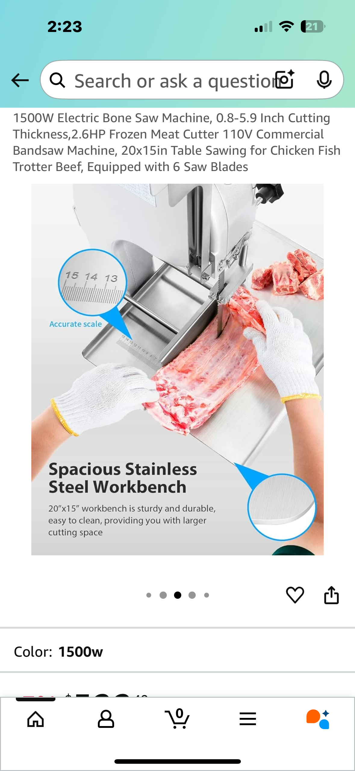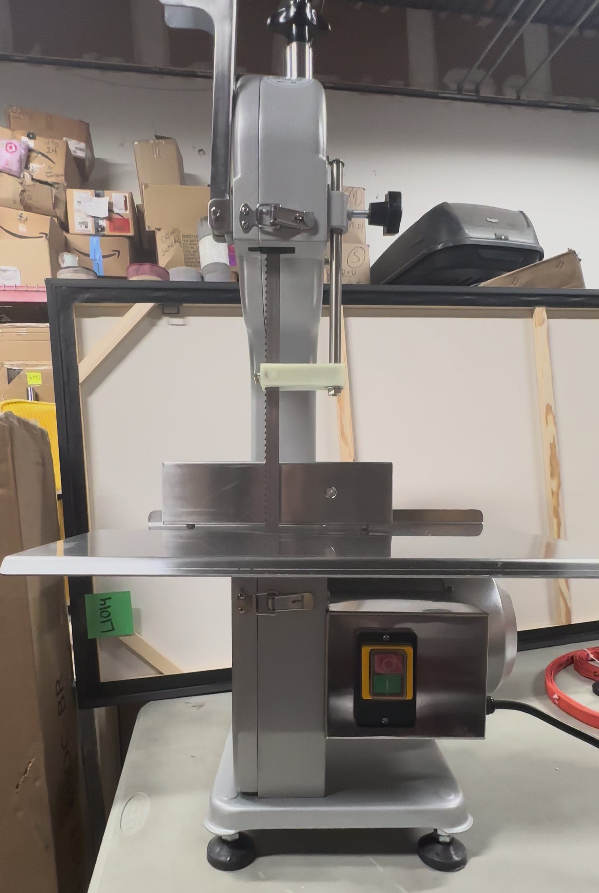 1500W Electric Bone Saw Machine, 0.8-5.9 Inch Cutting Thickness,2.6HP Frozen Meat Cutter 110V Commercial Bandsaw Machine, 20”x25” Table Saw for Chicken, Fish, Beef, Equipped with 6 Saw Blades (R678)