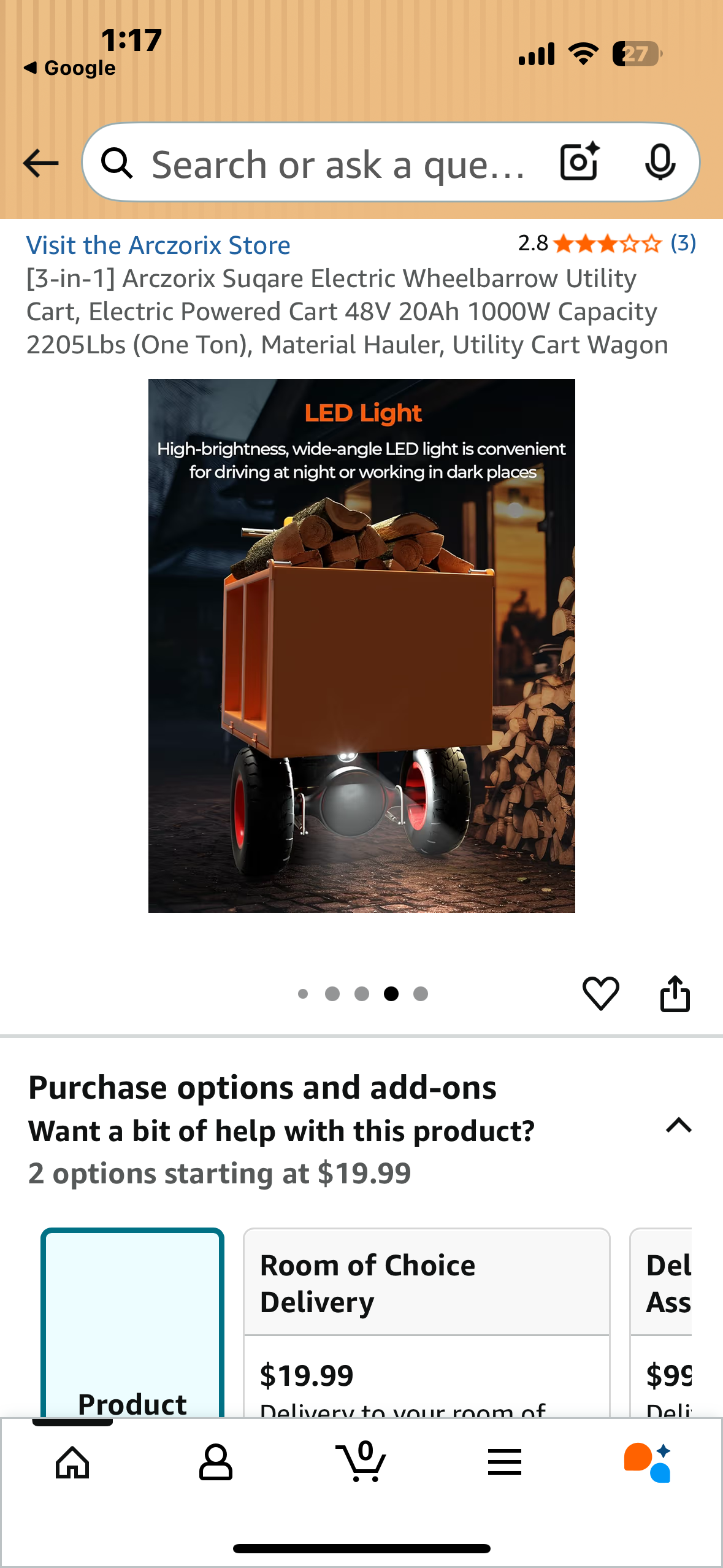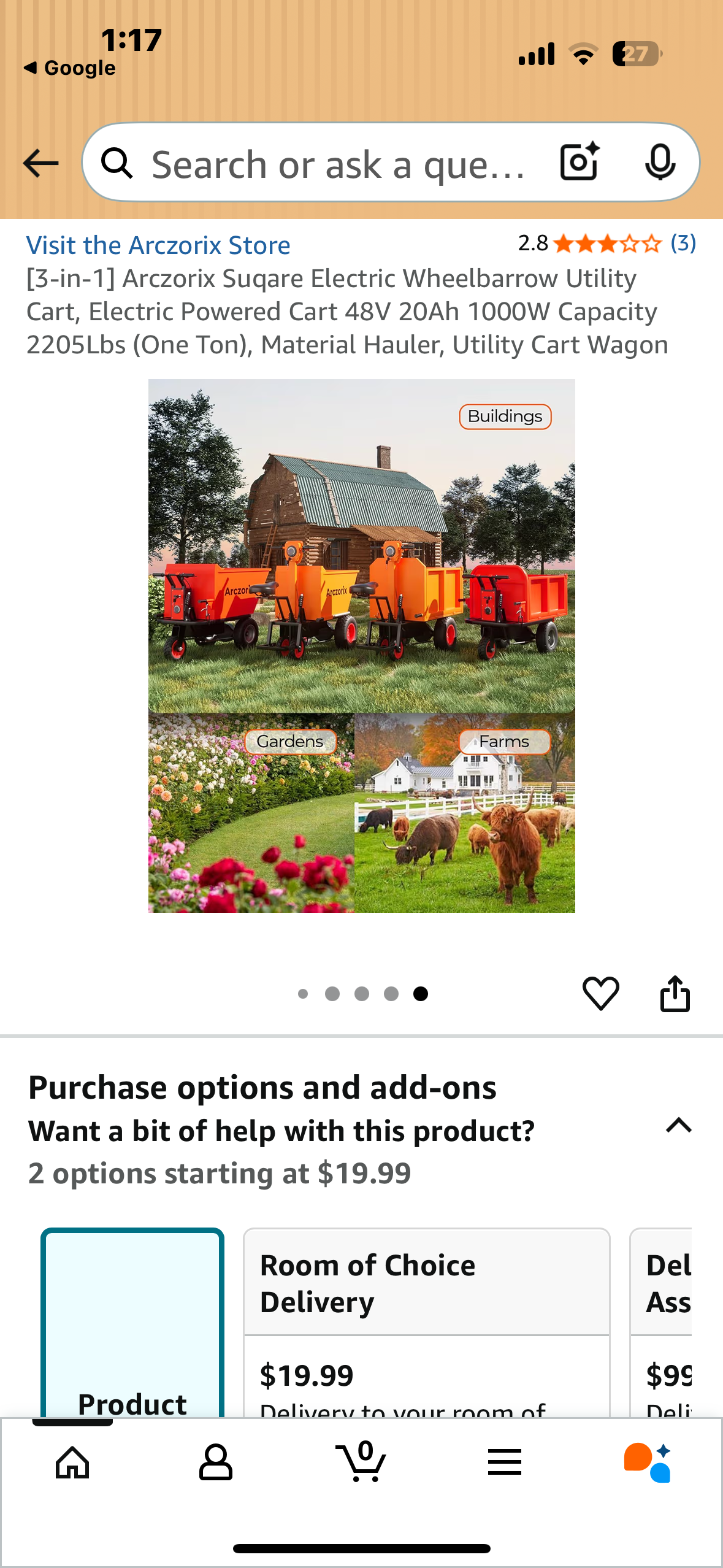 Arczorix [3-in-1] Electric Wheelbarrow Utility Cart, Electric Powered Cart 48V 20Ah 1000W Capacity 2205Lbs (One Ton), Material Hauler, Utility Cart Wagon (G876)