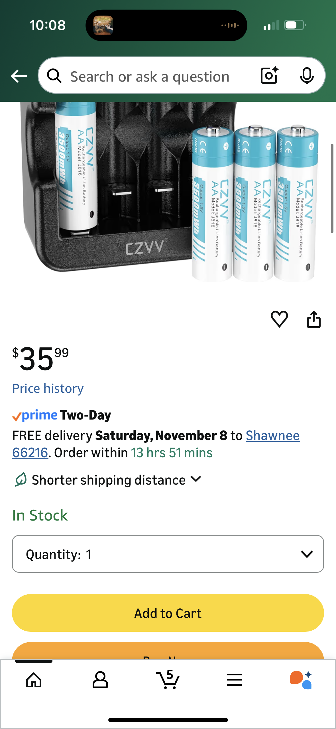 Rechargeable Lithium 1.5V Batteries with Black LCD Fast-Charger (Pack of 4)
