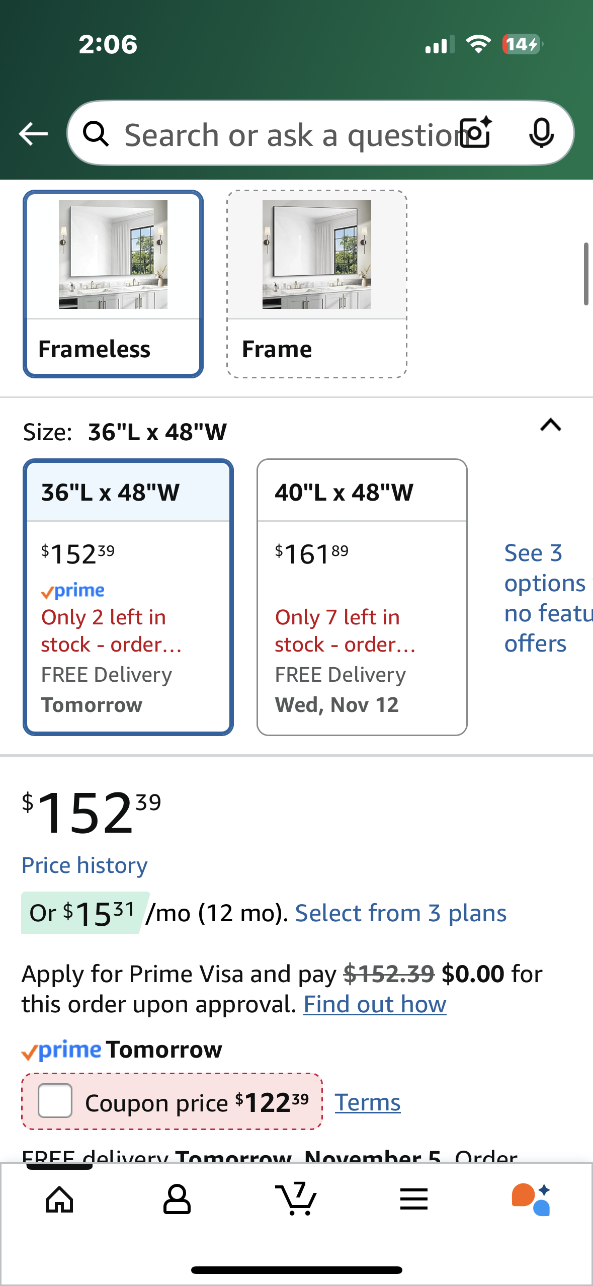36” x 48” Frameless Mirror, Upgraded Shatterproof, Wall Mount, Vanity Mirror for Bedroom, Living Room, Entryway (M419)