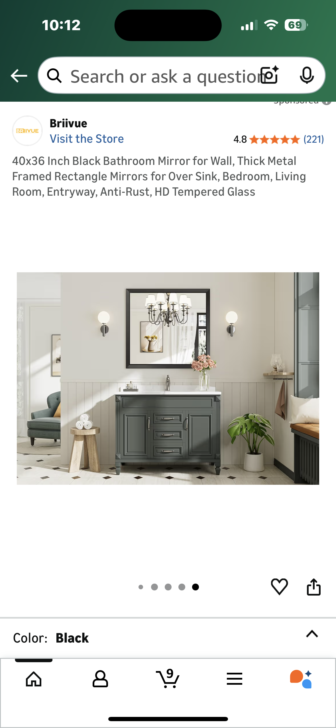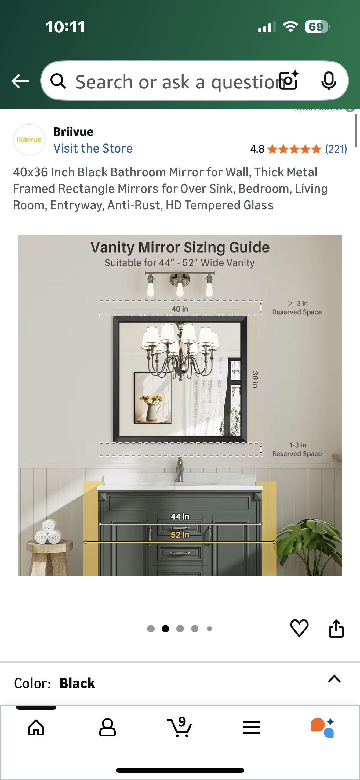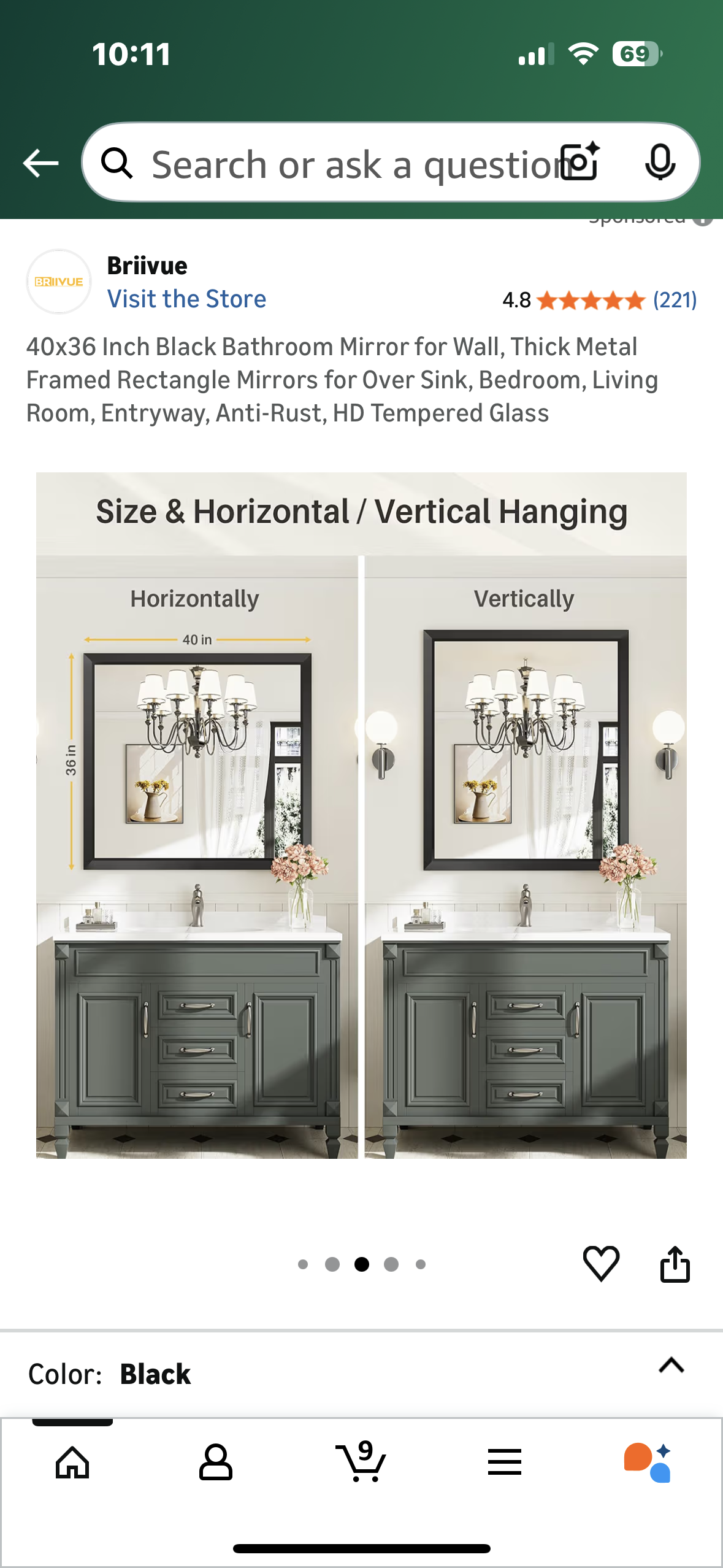 40x36 Inch Black Bathroom Mirror for Wall, Thick Metal Framed Rectangle Mirrors for Over Sink, Bedroom, Living Room, Entryway, Anti-Rust, HD Tempered Glass (M434)