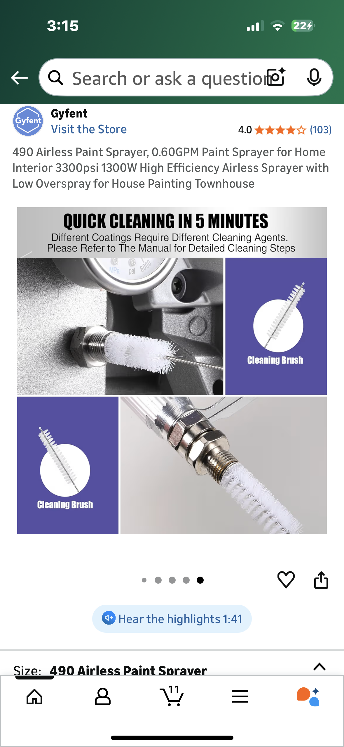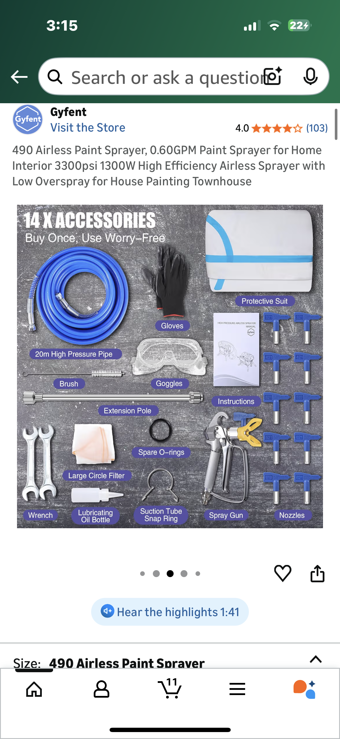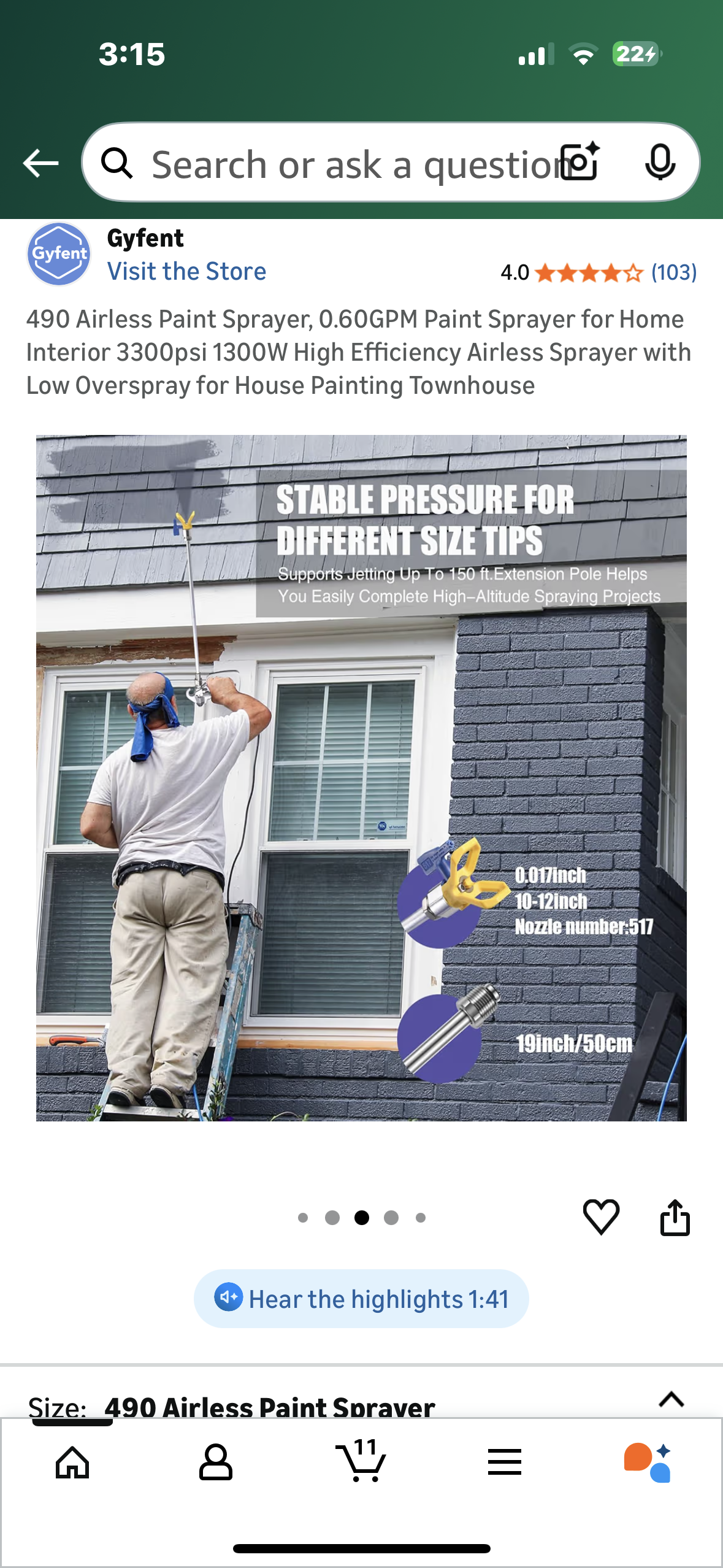 490 Airless Paint Sprayer, 0.60GPM Paint Sprayer for Home Interior 3300psi 1300W High Efficiency Airless Sprayer with Low Overspray for House Painting Townhouse (G907)