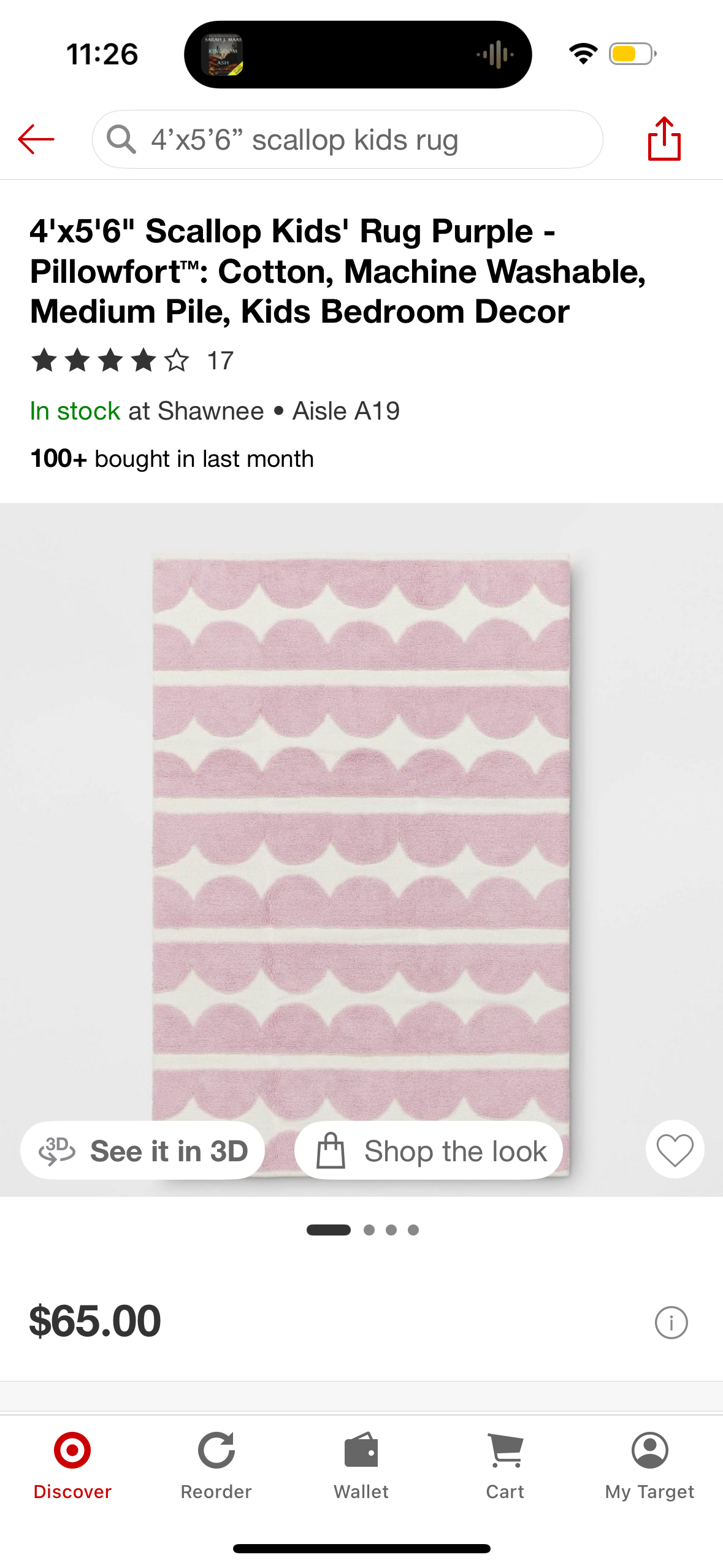 4'x5'6" Scallop Kids' Rug Purple - Pillowfort™: Cotton, Machine Washable, Medium Pile, Kids Bedroom Decor