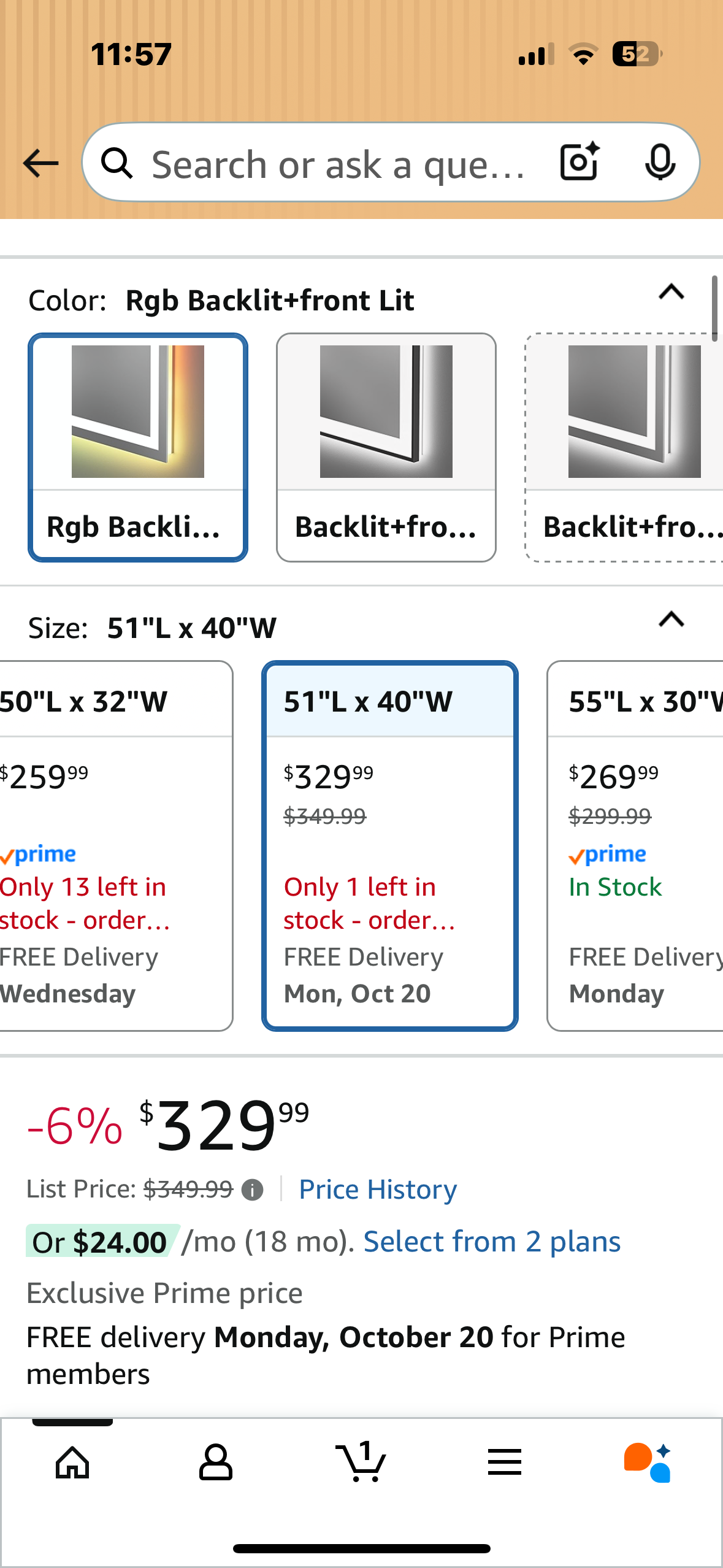 51x40 Inch RGB LED Bathroom Mirror, Front Light and RGB Backlit Lighted Vanity Mirror, Wall Mounted, Dimmable, Anti Fog, Shatter-Proof IP54 Waterproof (M395)