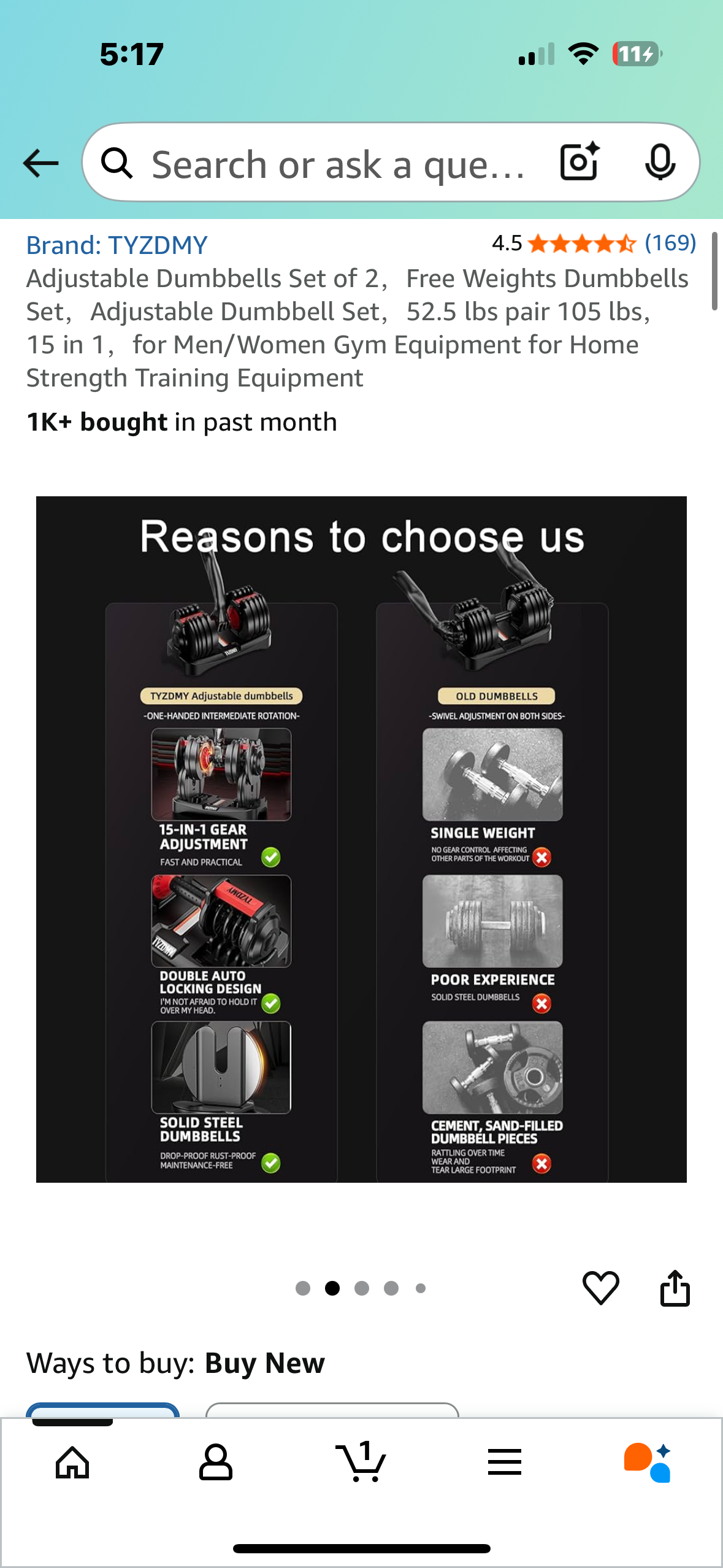 Adjustable Dumbbells Set of 2,15 in 1 Free Weights, 52.5 lbs each, pair 105 lbs, Gym Equipment for Home Strength Training Equipment (W515)