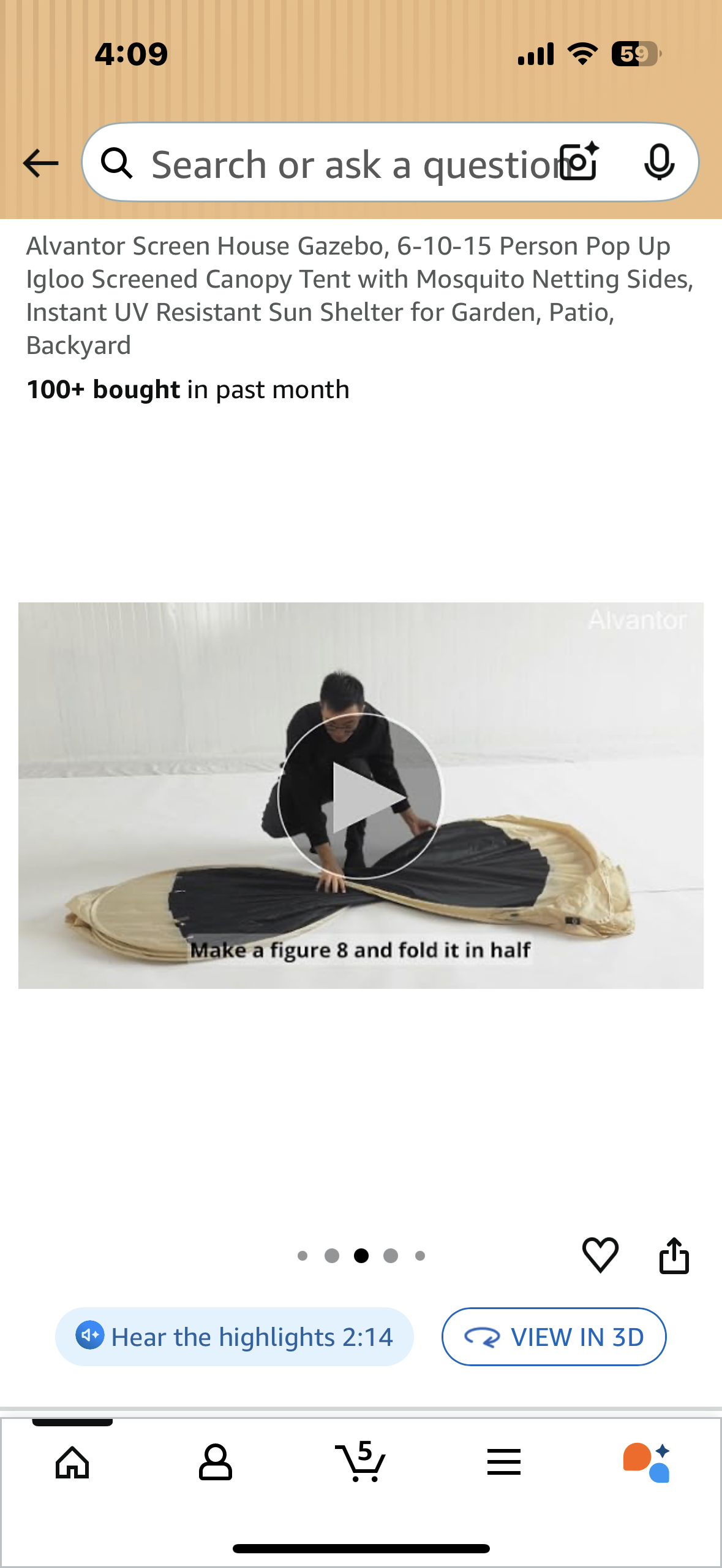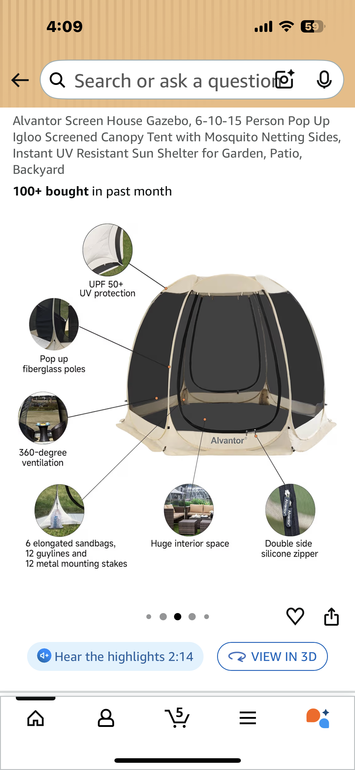 Alvantor Screen House Gazebo, 10’ x 10’ Pop Up Igloo Screened Canopy Tent with Mosquito Netting Sides, Instant UV Resistant Sun Shelter for Garden, Patio, Backyard (G895)