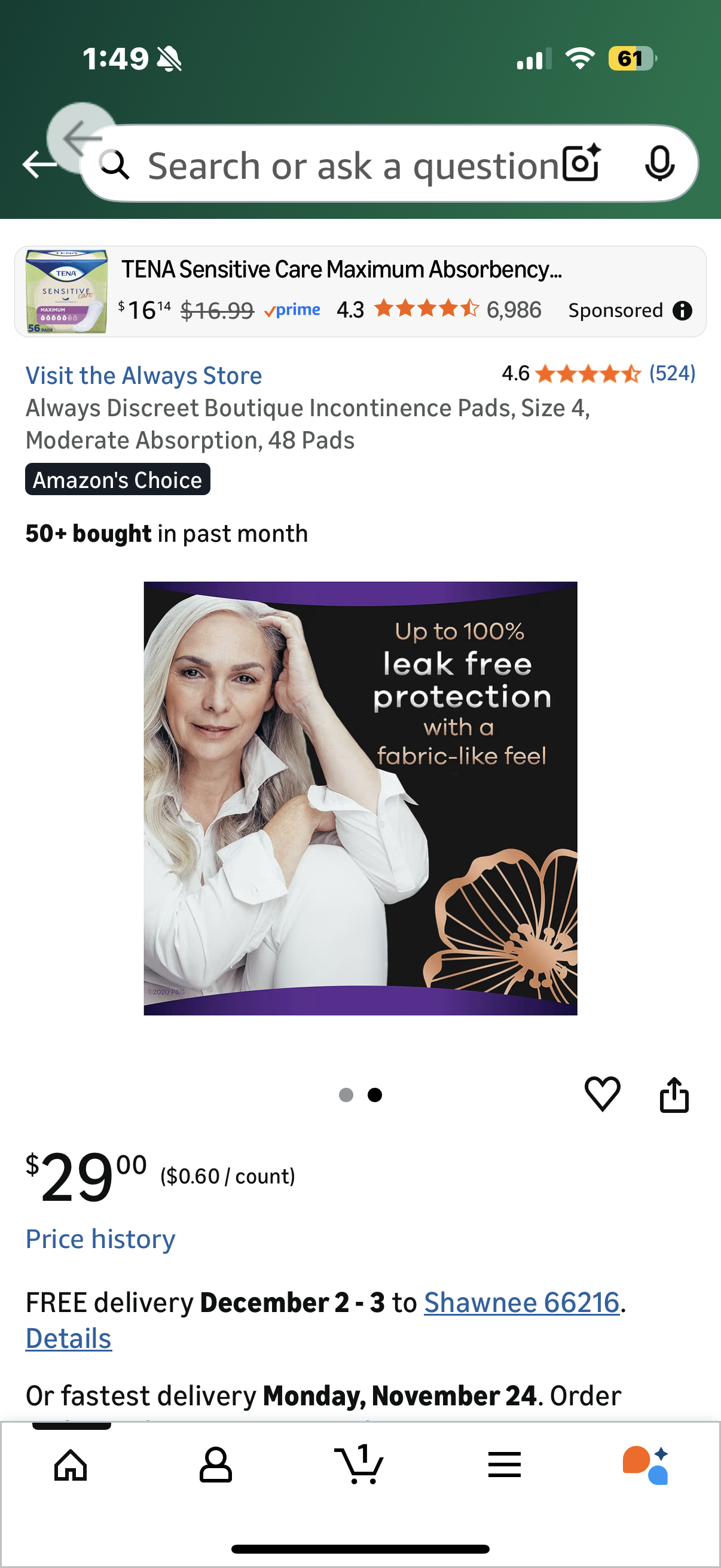 Always Discreet Boutique Incontinence Pads, Size 4, Moderate Absorption, 48 Pads
