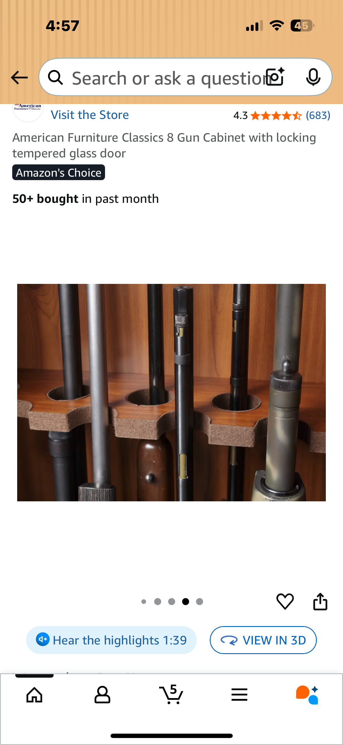 American Furniture Classics 8 Gun Cabinet with locking tempered glass door (R713)