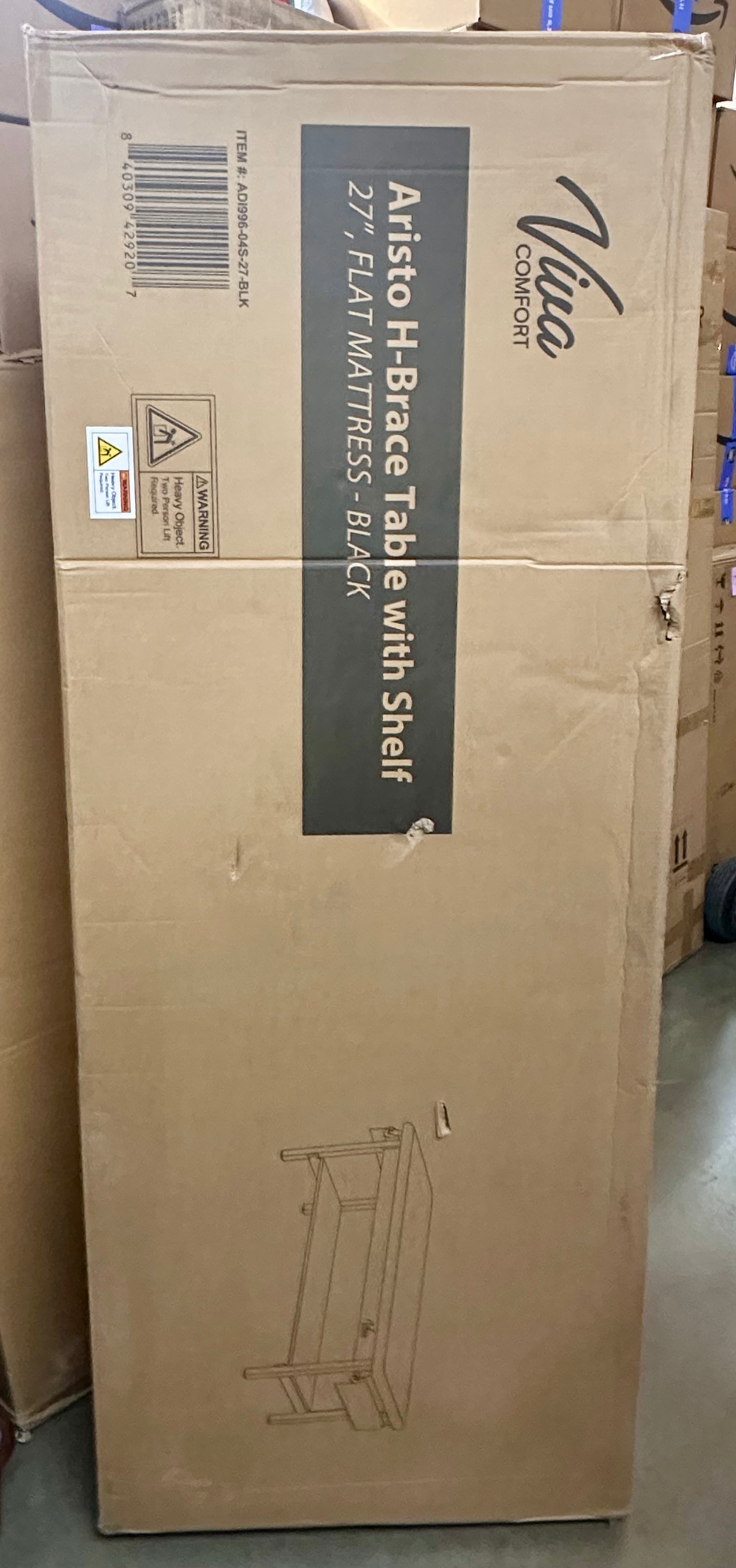 VivaComfort Aristo H-Brace Wooden Flat Treatment Table with Shelf, 500 Ibs Weight Capacity, Black (R722)
