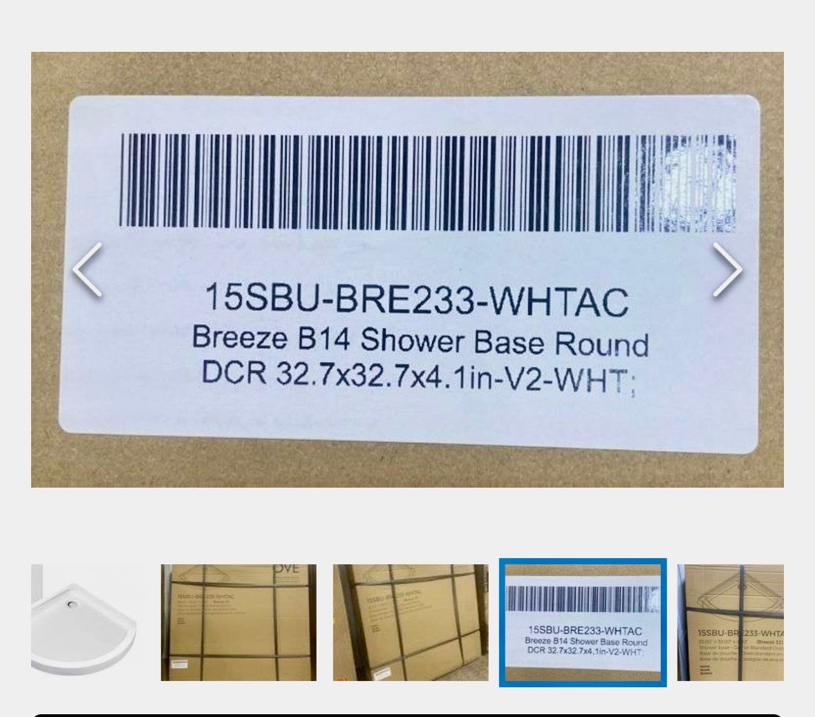 OVE 33”x33”x 4” Corner Shower Base with Standard Drain 15SBU -BEE233-WHTAC (B1214)