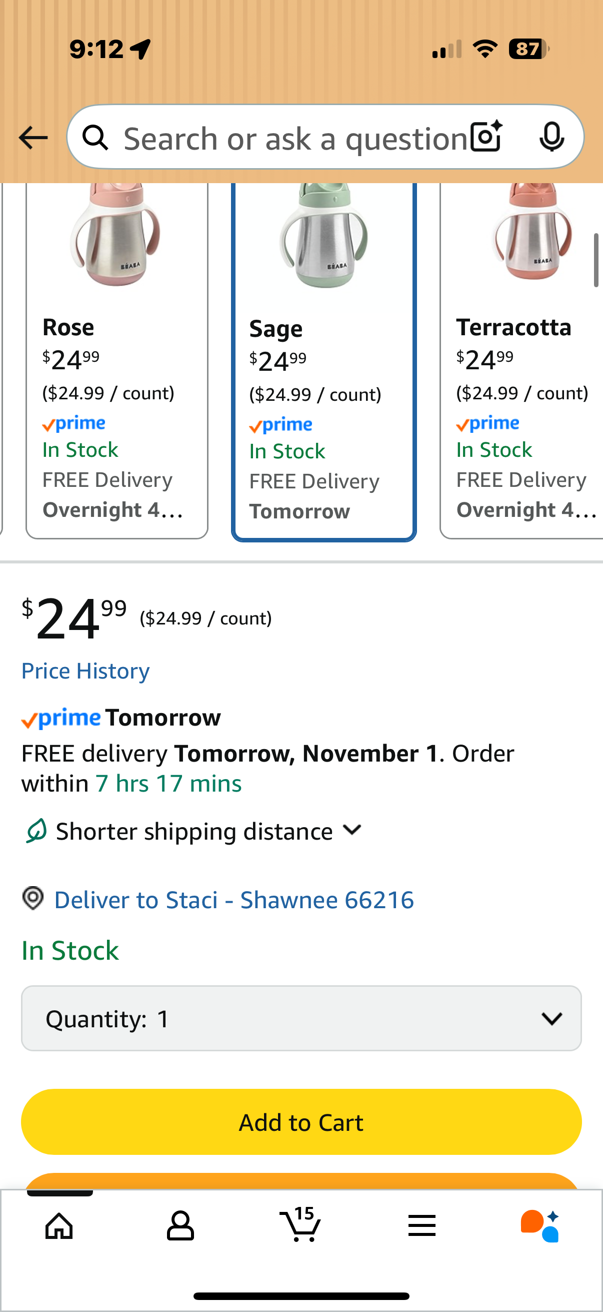 Beaba Stainless Steel Straw Sippy Cup, Insulated Toddler Cups Spill Proof with Removable Handles, Made with High Grade Stainless Steel, 8+ Months, 8 oz (250mL), (Sage
