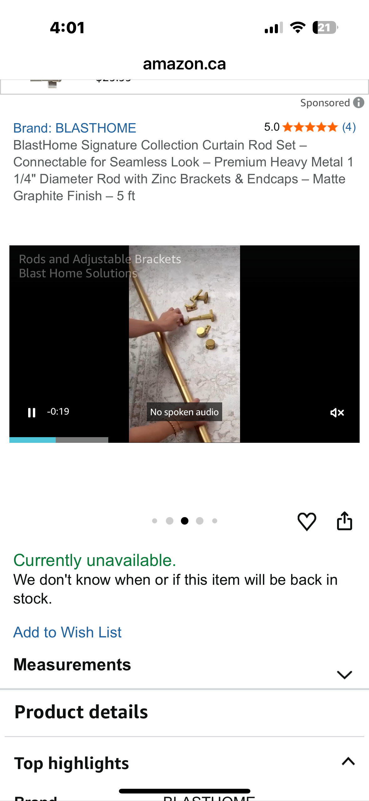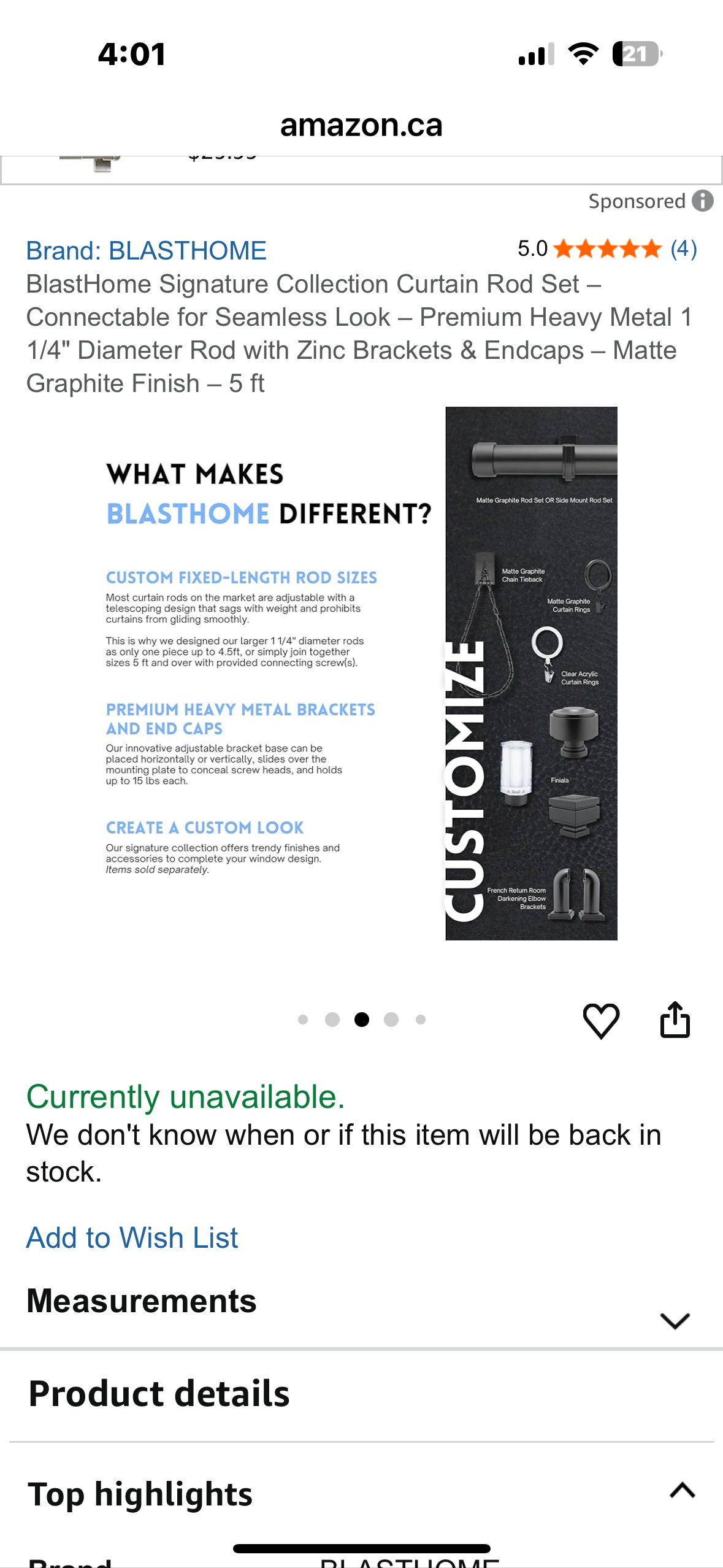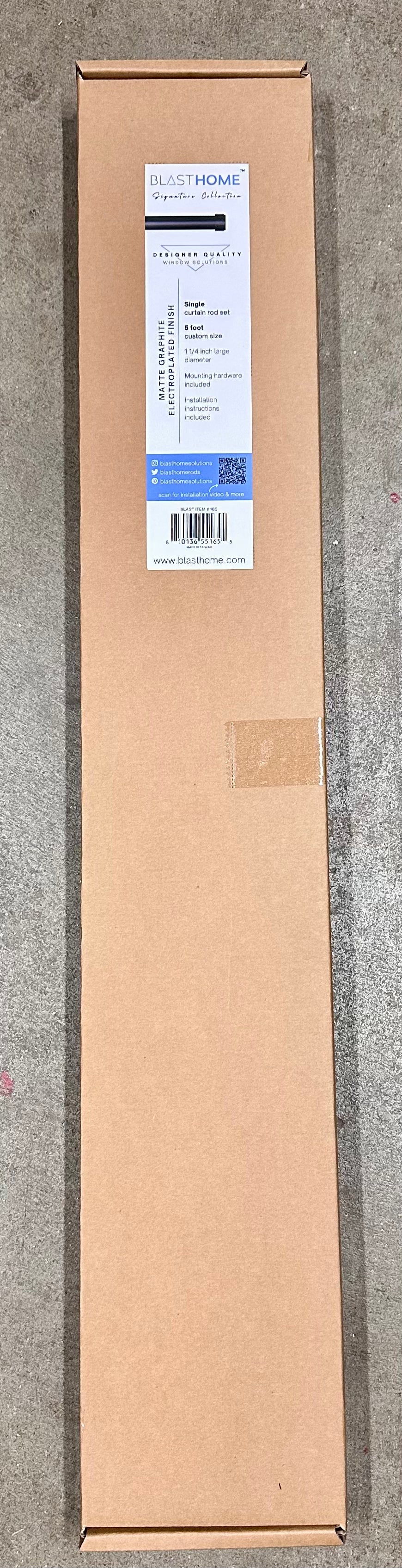BlastHome Signature Collection Curtain Rod Set – Connectable for Seamless Look – Premium Heavy Metal 1 1/4" Diameter Rod with Zinc Brackets & Endcaps – Matte Graphite Finish – 5 ft (L1089)
