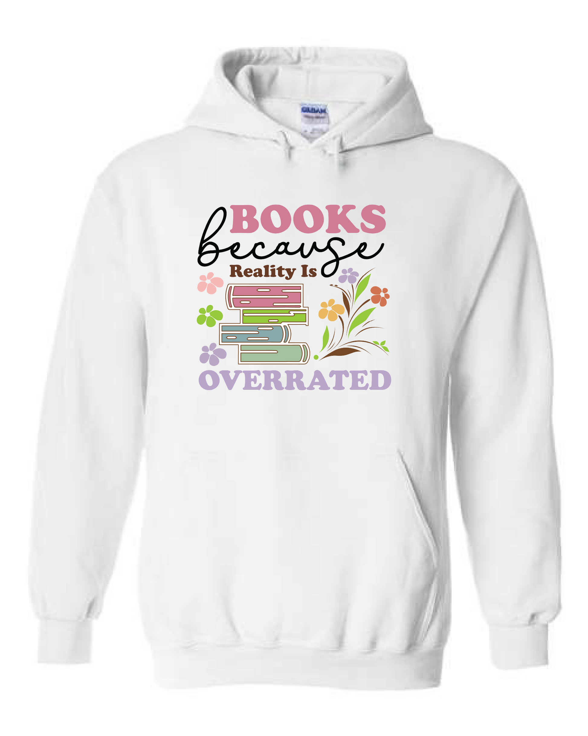 Books Because Reality Is Overrated (Crewneck & Hooded Sweatshirts Available, Youth & Adult Sizes)