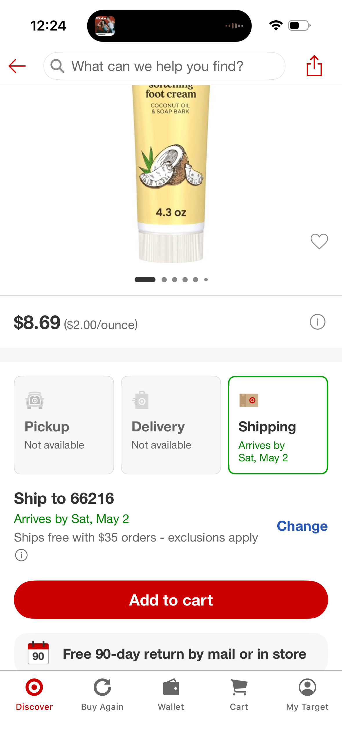 Burt's Bees Foot Cream Lotion - Coconut - 4.34oz: Paraben-Free, Sulfate-Free, Deep Hydration, Normal/Dry Skin
