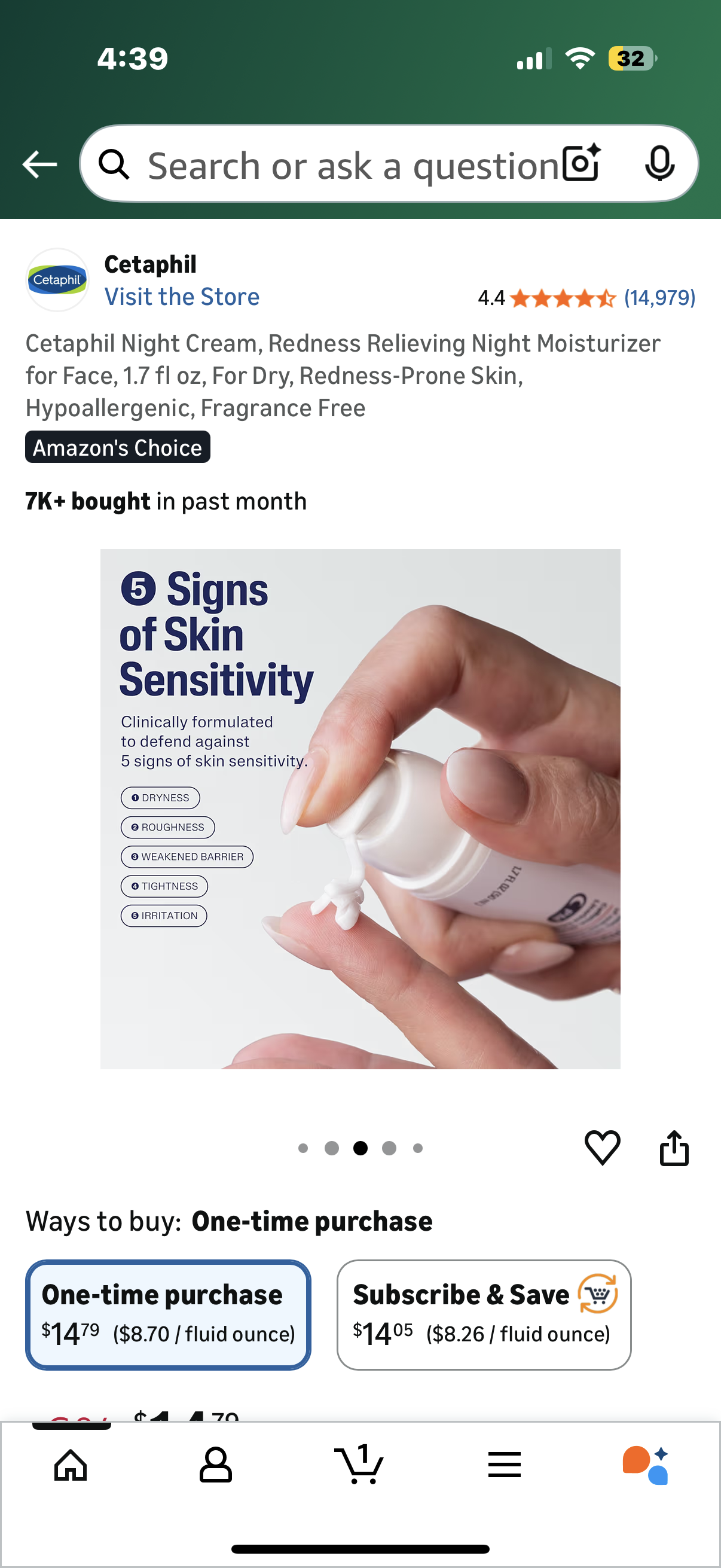 Cetaphil Night Cream, Redness Relieving Night Moisturizer for Face, 1.7 fl oz, For Dry, Redness-Prone Skin, Hypoallergenic, Fragrance Free