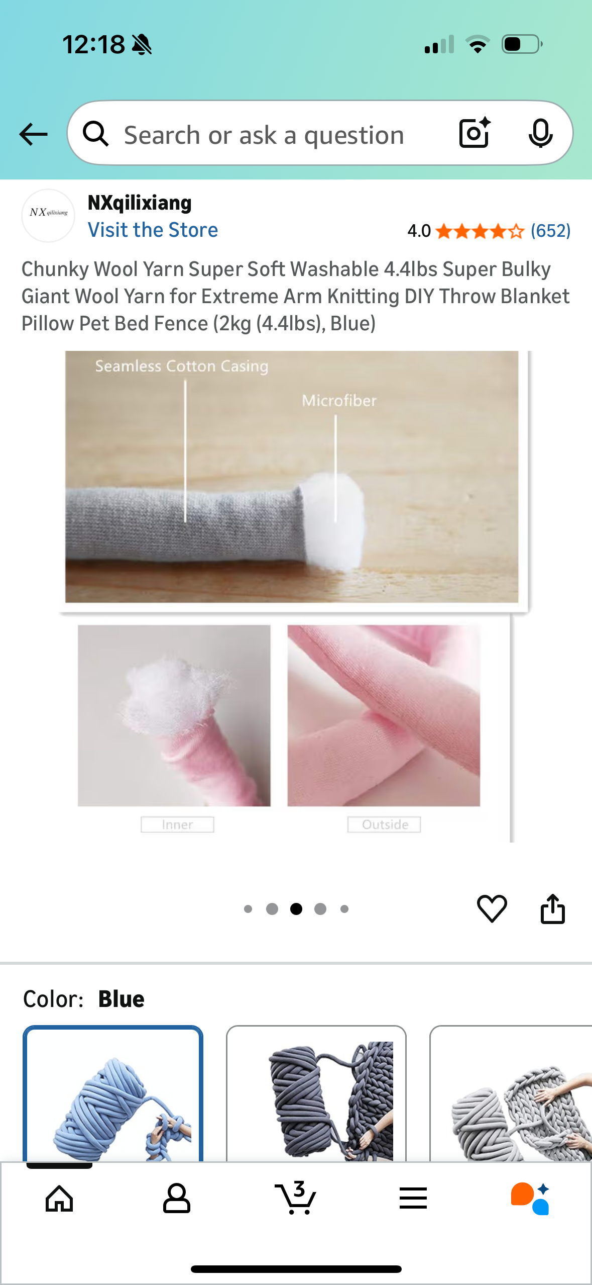 Chunky Wool Yarn Super Soft Washable 4.4lbs Super Bulky Giant Wool Yarn for Extreme Arm Knitting DIY Throw Blanket Pillow Pet Bed Fence (2kg (4.4lbs), Blue)