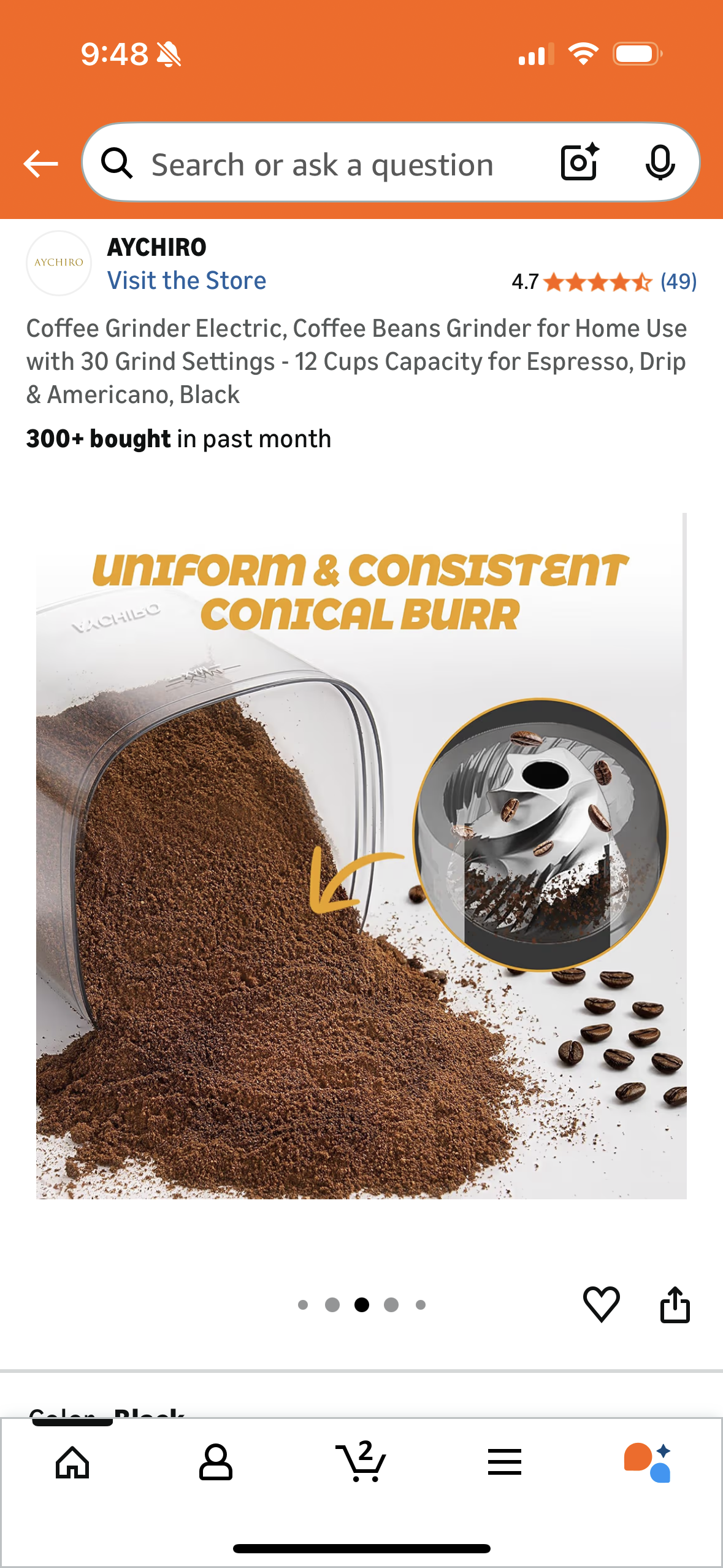 Coffee Grinder Electric, Coffee Beans Grinder for Home Use with 30 Grind Settings - 12 Cups Capacity for Espresso, Drip & Americano, Black