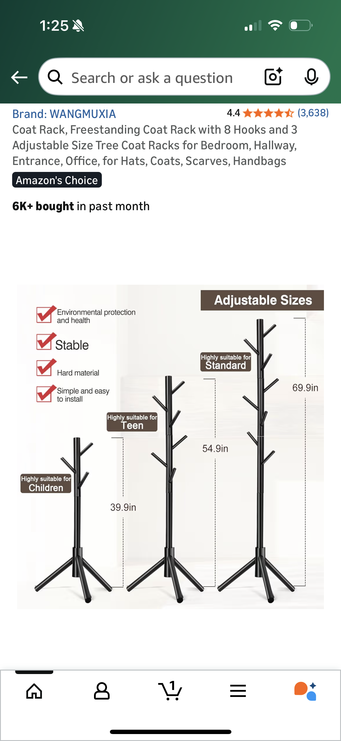 Coat Rack, Freestanding Coat Rack with 8 Hooks and 3 Adjustable Size Tree Coat Racks for Bedroom, Hallway, Entrance, Office, for Hats, Coats, Scarves, Handbags