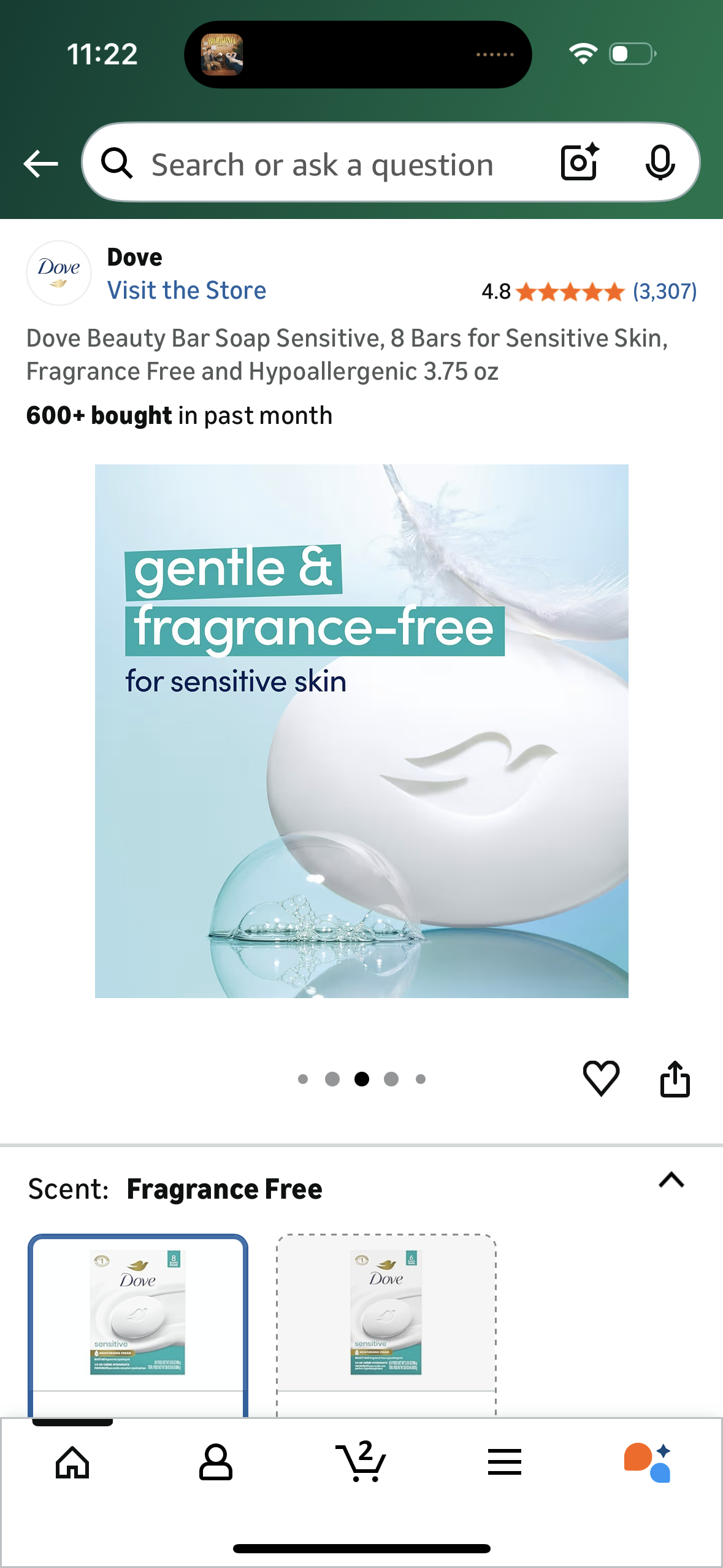 Dove Beauty Bar Soap Sensitive, 8 Bars for Sensitive Skin, Fragrance Free and Hypoallergenic 3.75 oz