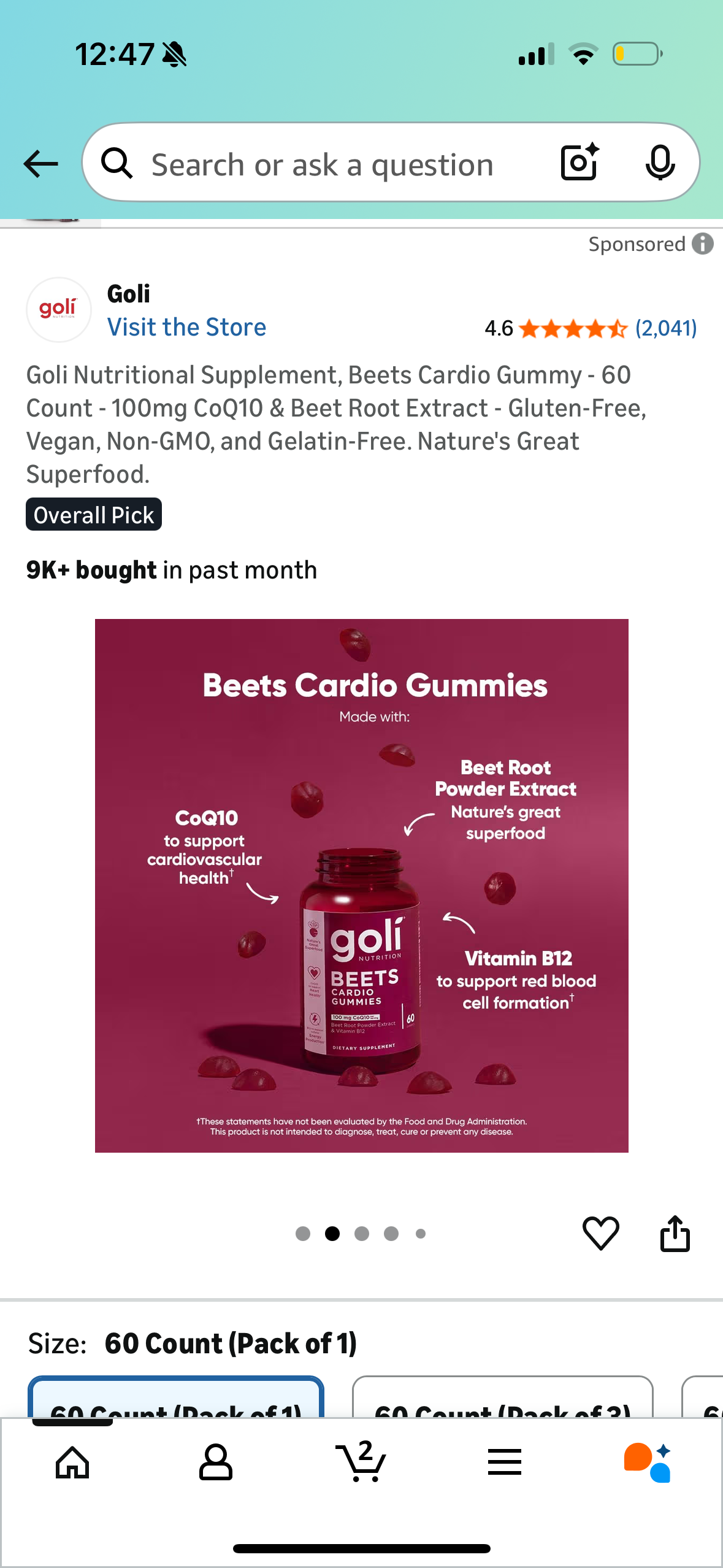 Goli Nutritional Supplement, Beets Cardio Gummy - 60 Count - 100mg CoQ10 & Beet Root Extract - Gluten-Free, Vegan, Non-GMO, and Gelatin-Free. Nature's Great Superfood.