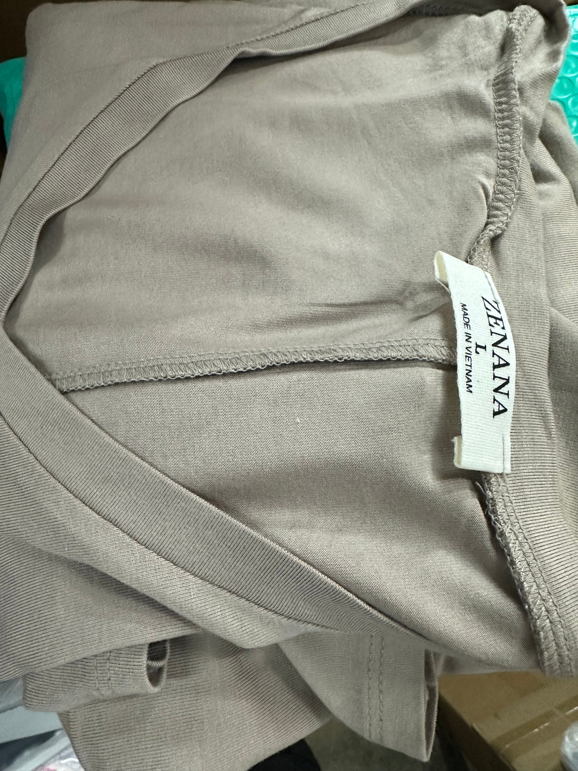 Very, very smooth and soft. Top is oversized. Color is Light Mocha (pic 3)