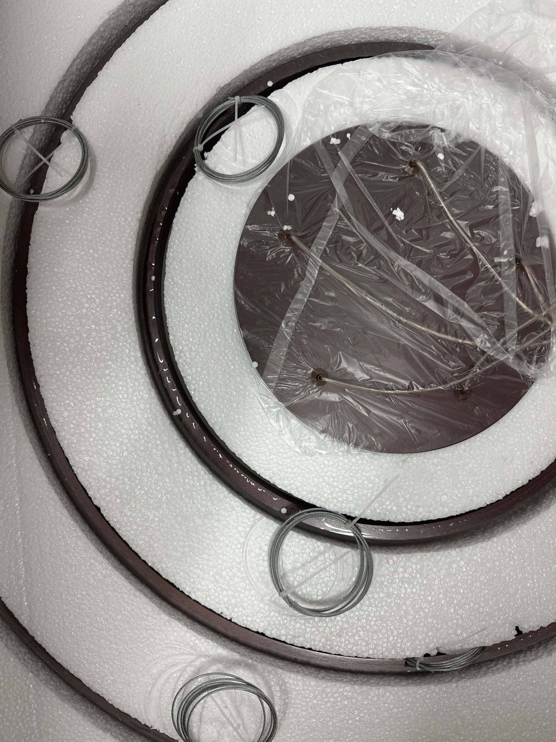Open box. Appears new. Exactly the same as the listing however. This light is a brushed coffee color. (See pics.)