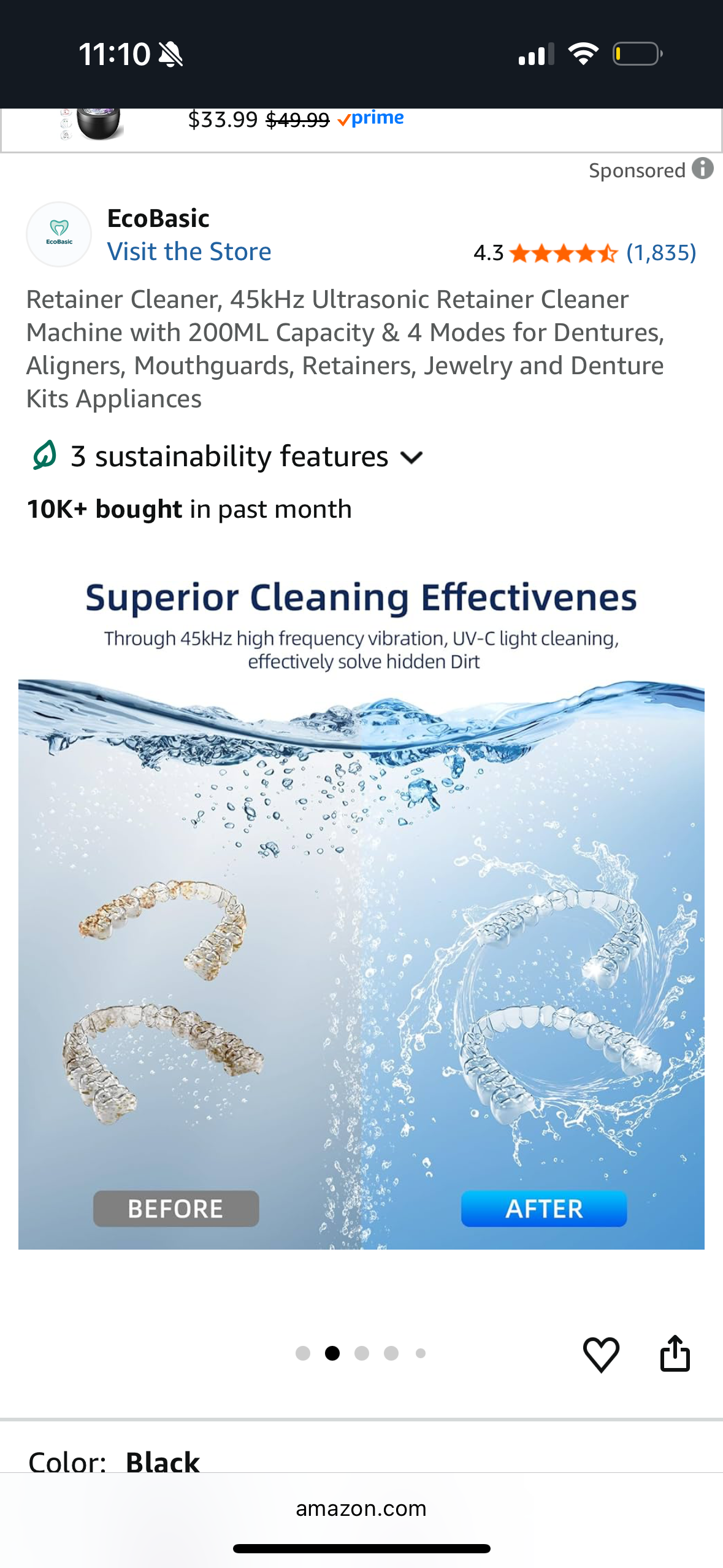 Ultrasonic Retainer Cleaner U-V Light for Dentures, 45kHz Mouth Guard, Aligner, Toothbrush Head, Jewelry, Portable Cleaner for All Dental Appliances at-Home or Travel 200ML