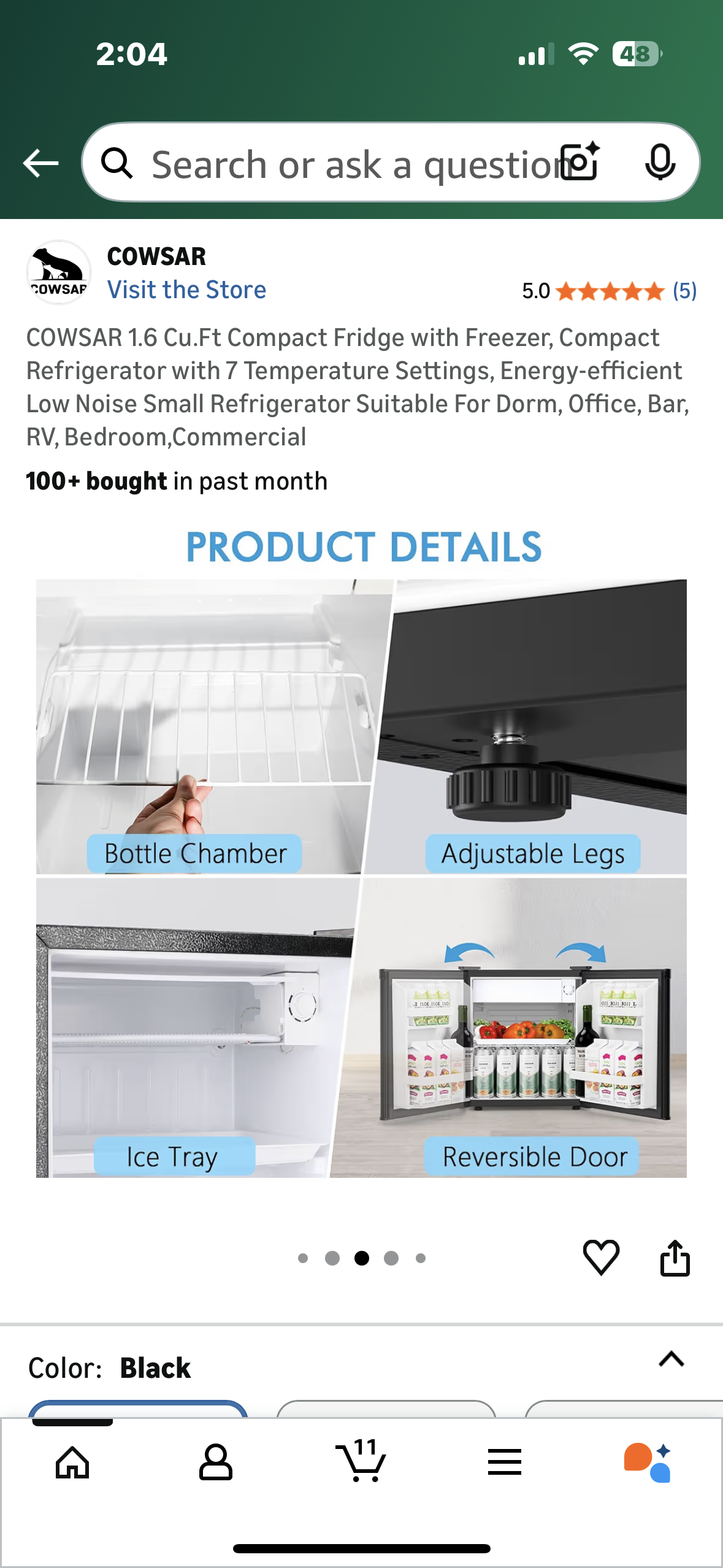 COWSAR 1.6 Cu.Ft Compact Fridge with Freezer, Compact Refrigerator with 7 Temp Settings, Energy-efficient Low Noise, Suitable For Dorm, Office, Bar, RV, Bedroom (R732)