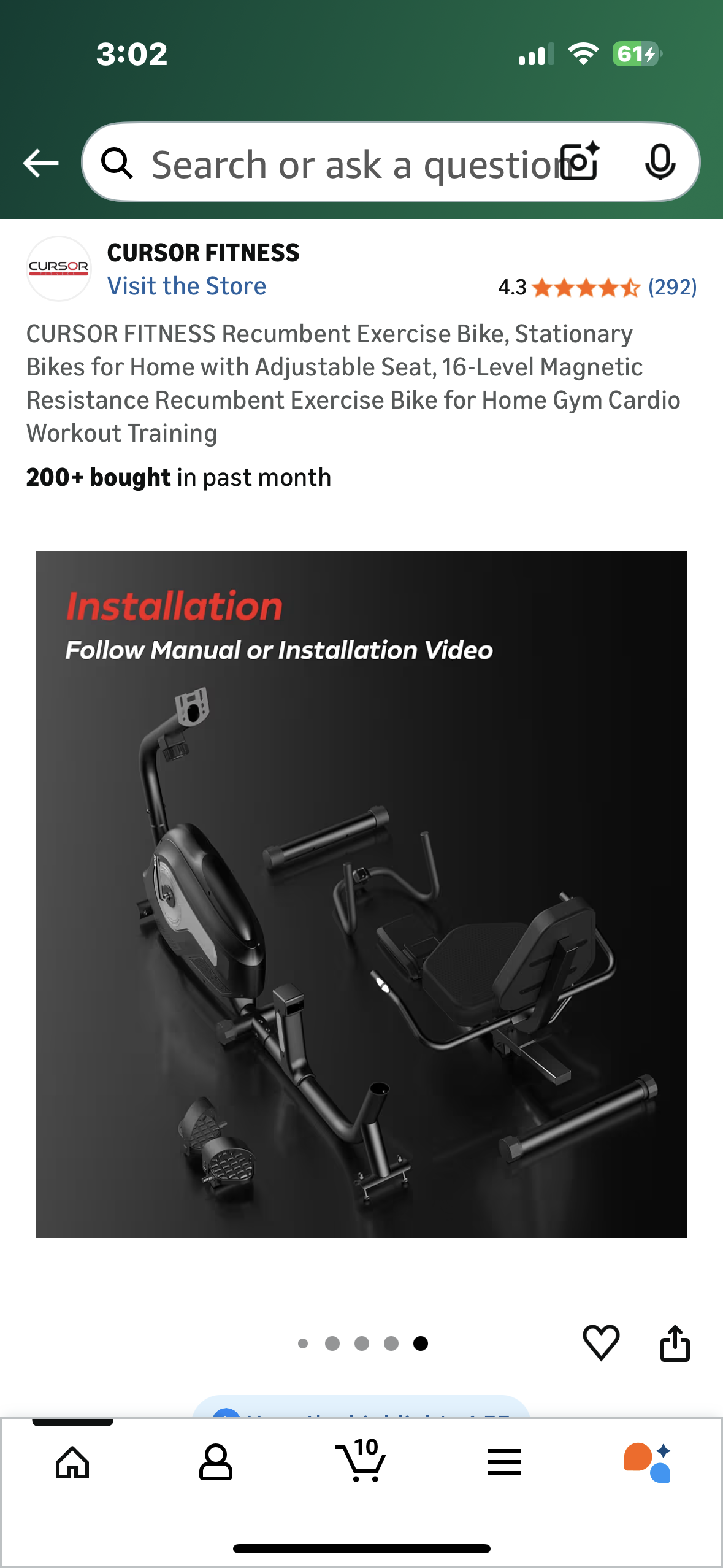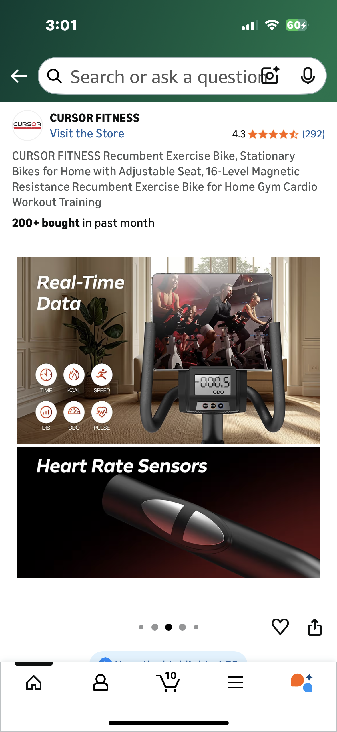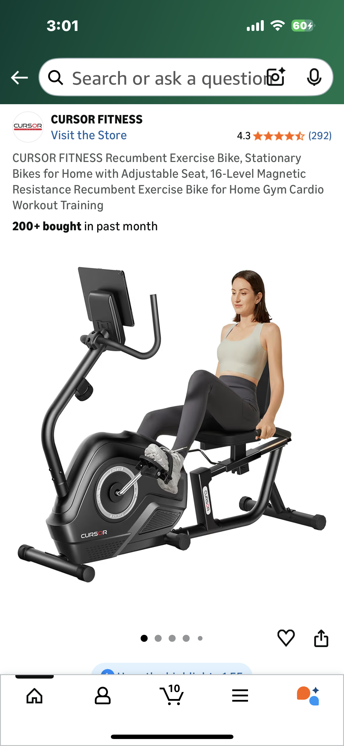 CURSOR FITNESS CBR60 Recumbent Exercise Bike, Stationary Bike for Home with Adjustable Seat, 16-Level Magnetic Resistance Recumbent Exercise Bike for Home Gym Cardio Training (W544)