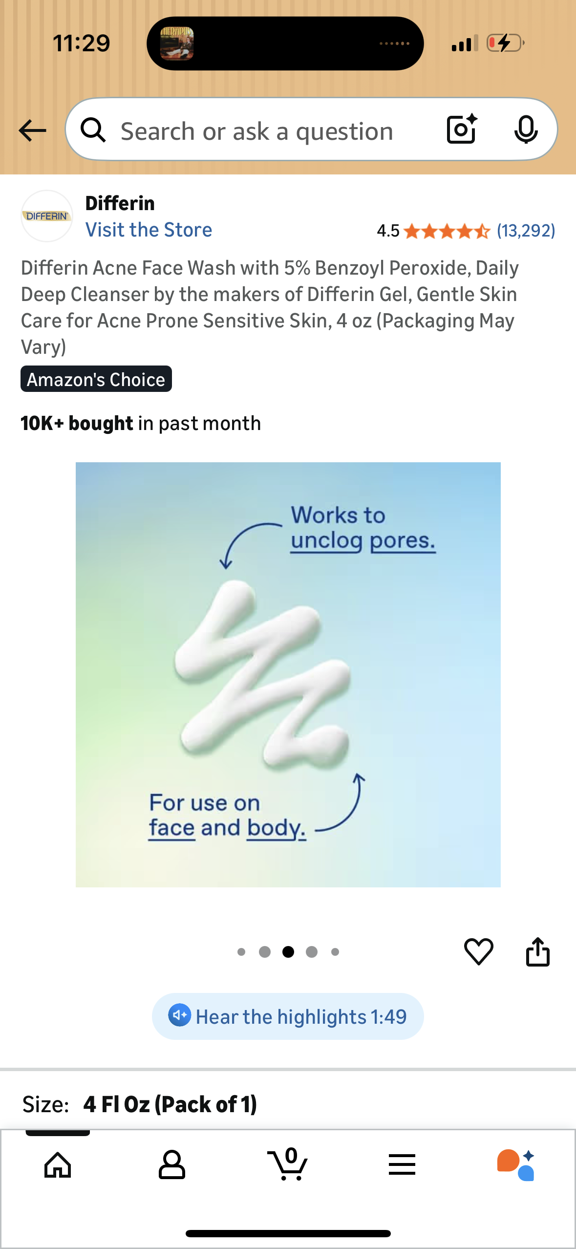Differin Acne Face Wash with 5% Benzoyl Peroxide, Daily Deep Cleanser by the makers of Differin Gel, Gentle Skin Care for Acne Prone Sensitive Skin, 4 oz (Packaging May Vary)