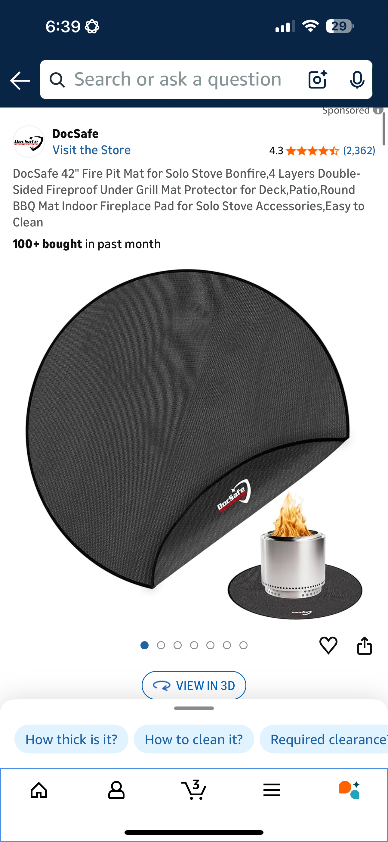 DocSafe 42" Fire Pit Mat for Solo Stove Bonfire,4 Layers Double-Sided Fireproof Under Grill Mat Protector for Deck,Patio,Round BBQ Mat Indoor Fireplace Pad for Solo Stove Accessories,Easy to Clean