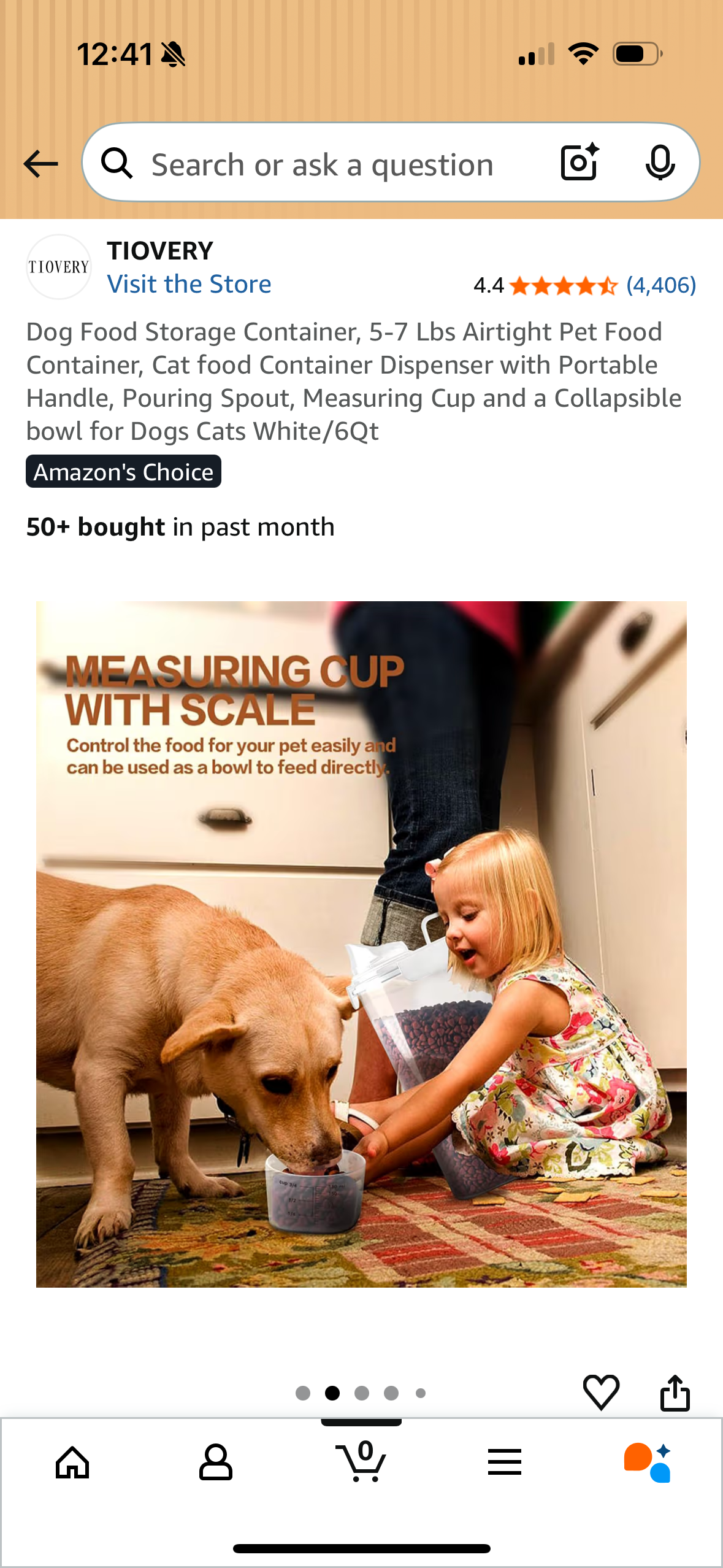 Dog Food Storage Container, 5-7 Lbs Airtight Pet Food Container, Cat food Container Dispenser with Portable Handle, Pouring Spout, Measuring Cup and a Collapsible bowl for Dogs Cats White/6Qt