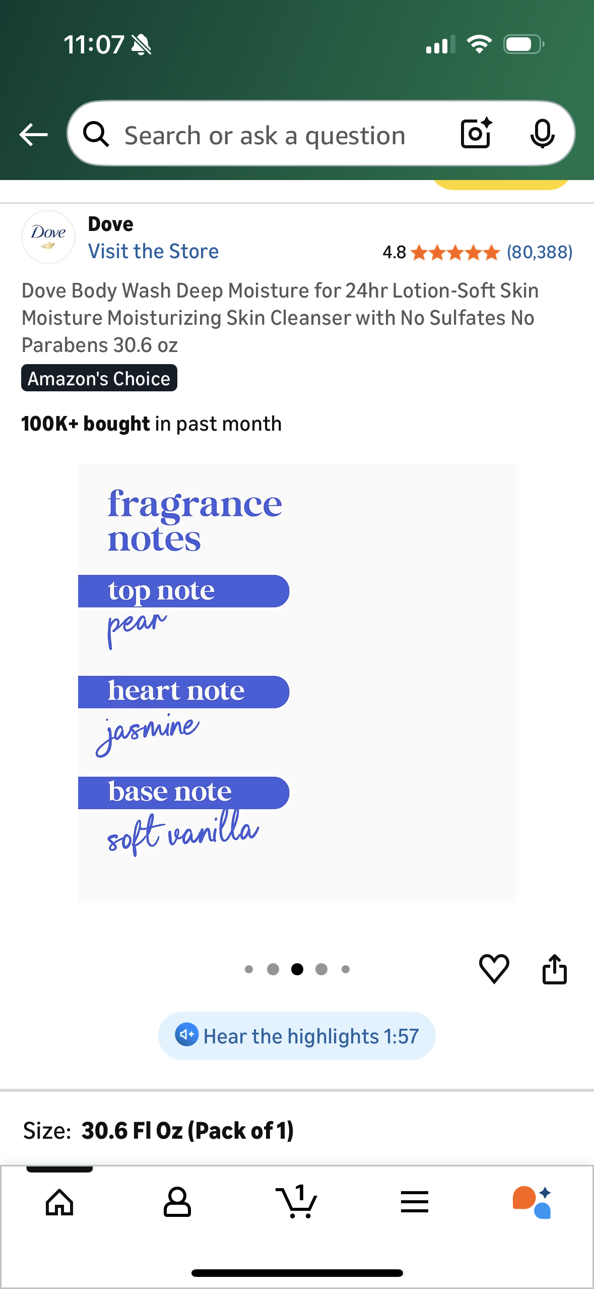 Dove Body Wash Deep Moisture for 24hr Lotion-Soft Skin Moisture Moisturizing Skin Cleanser with No Sulfates No Parabens 30.6 oz