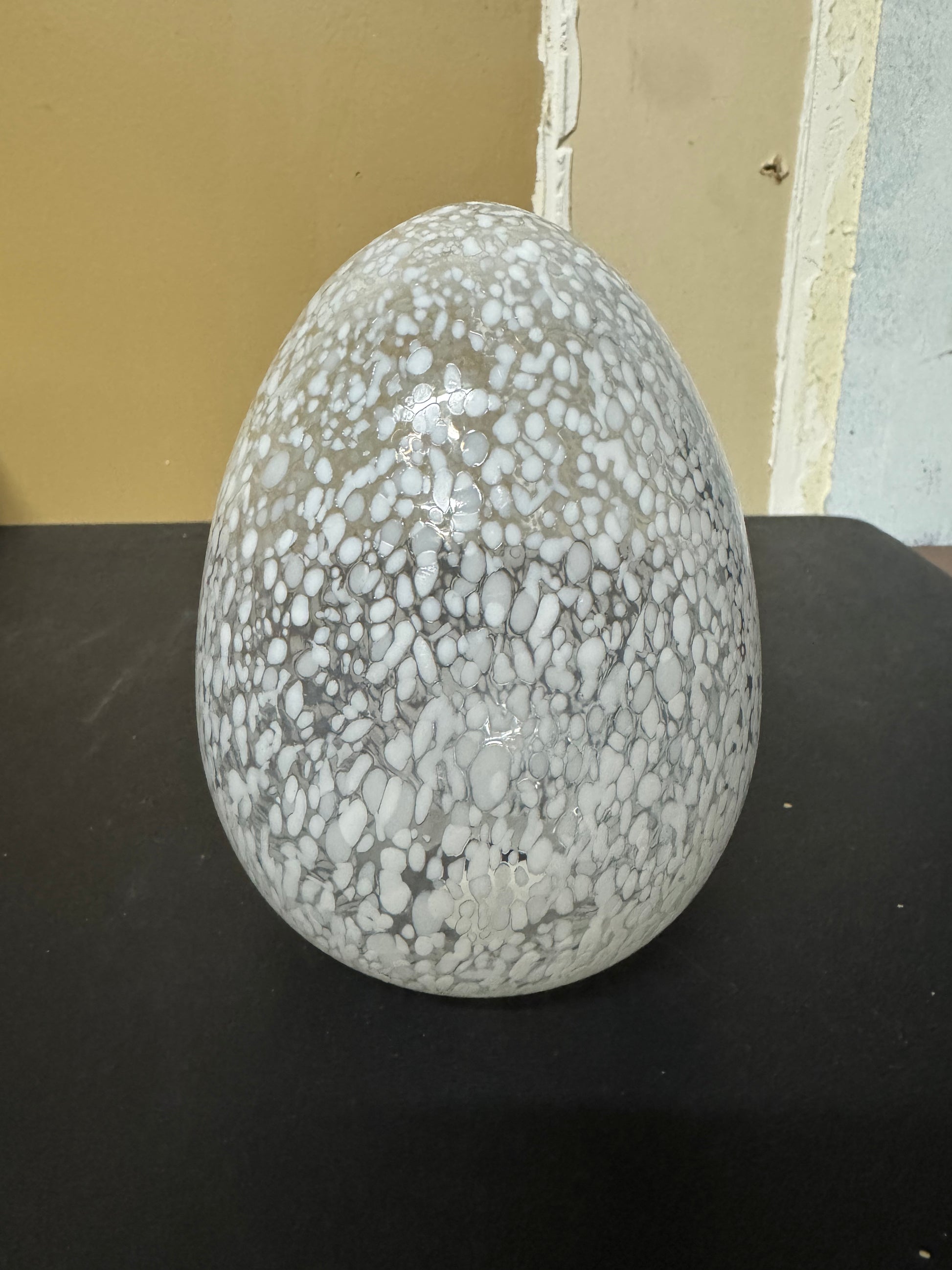 Egg Tabletop, Desk, Mantel Decorations for Home, Office, Classroom, Large 5" x 6", Speckled White Glass Egg