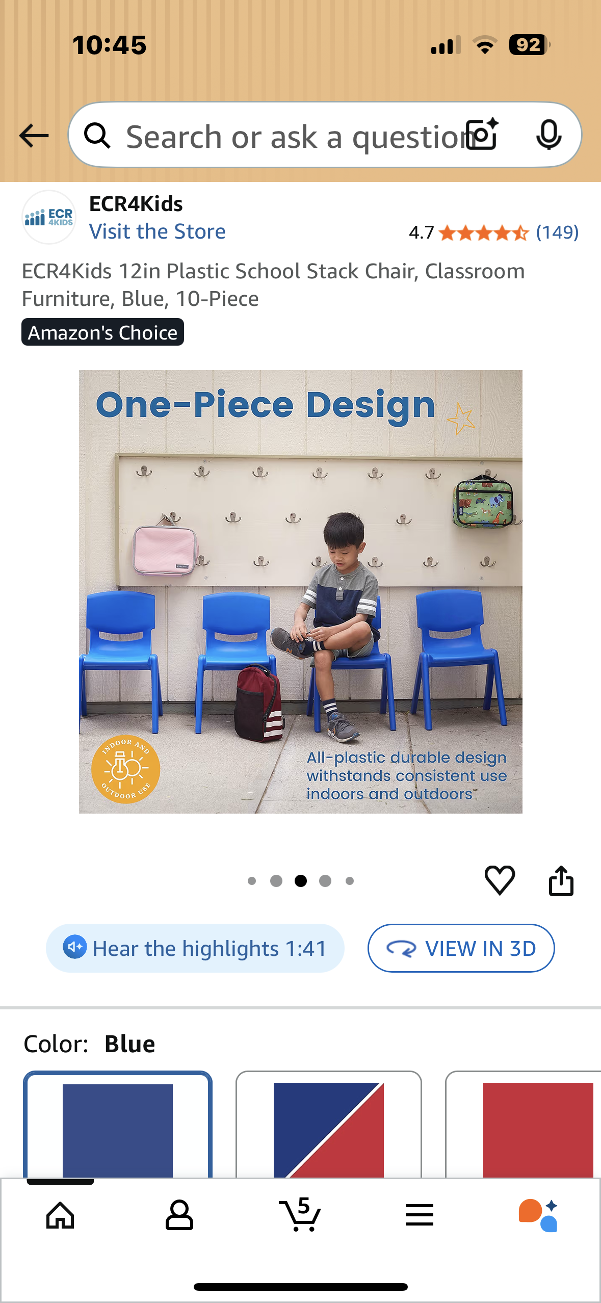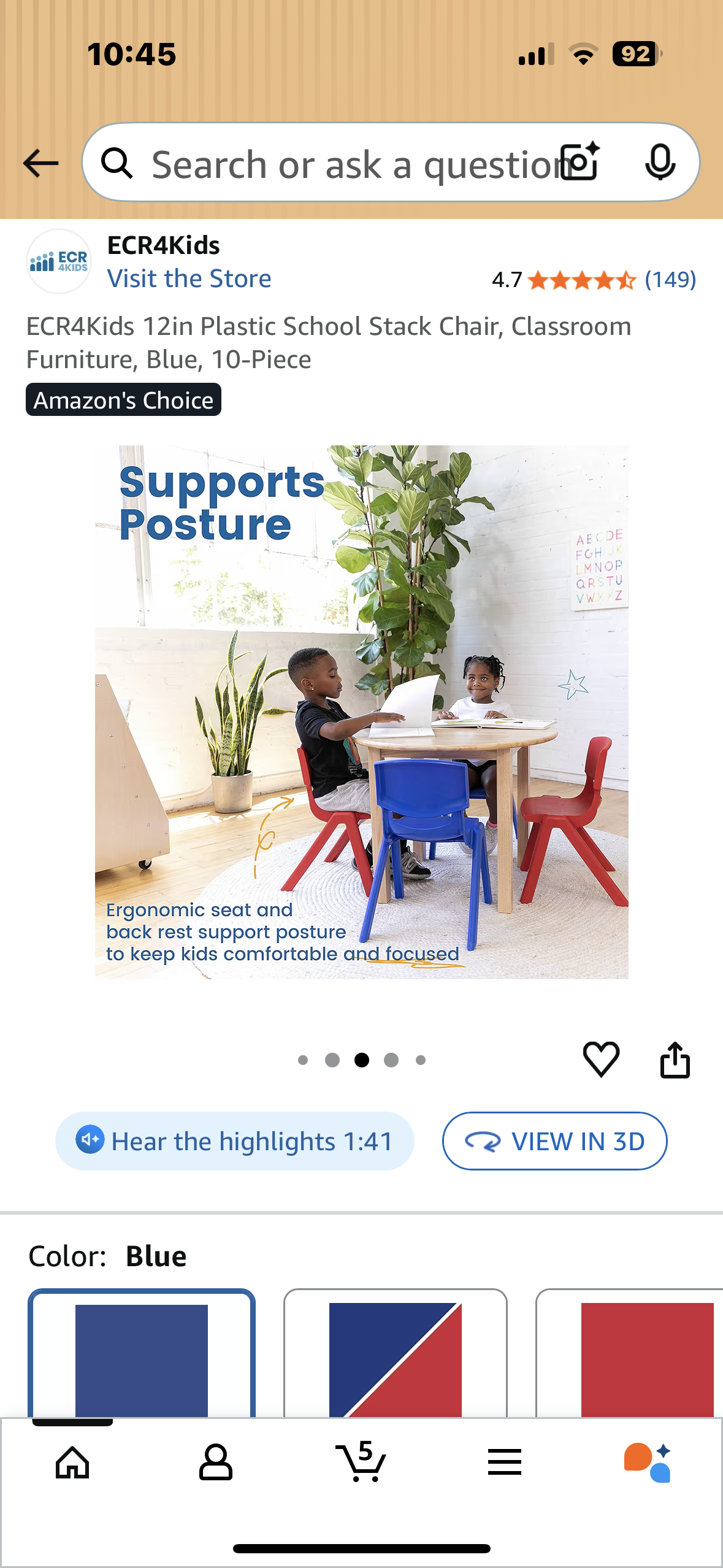 10 Chairs - 12in Plastic School Stack Chair, Classroom Furniture, Blue, 10-Piece (R723)