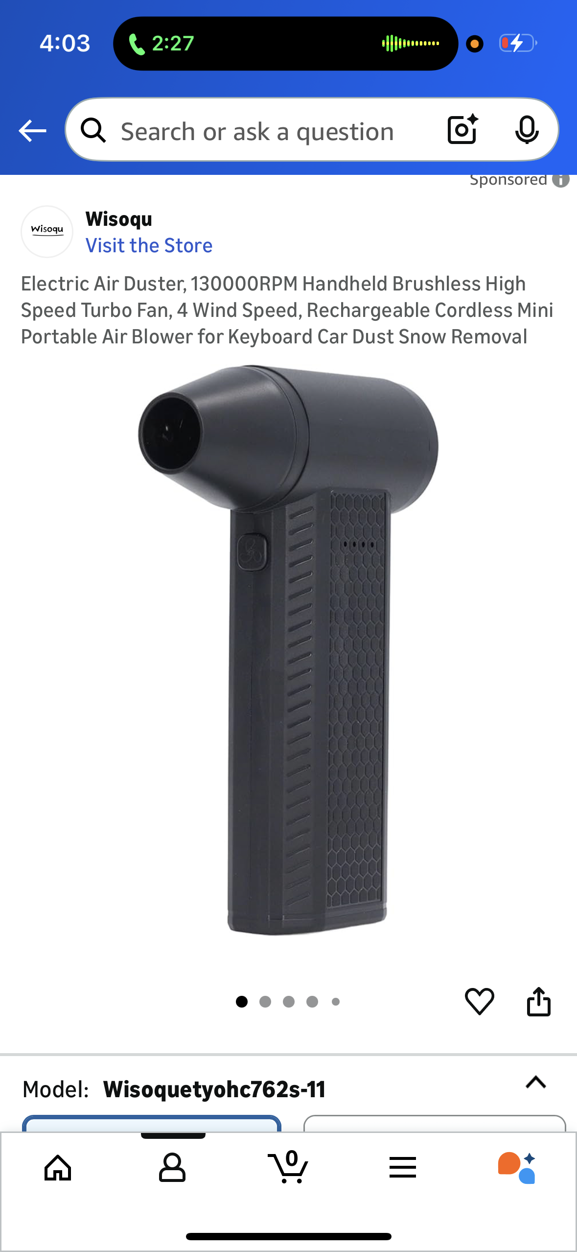 Electric Air Duster, 130000RPM Handheld Brushless High Speed Turbo Fan, 4 Wind Speed, Rechargeable Cordless Mini Portable Air Blower for Keyboard Car Dust Snow Removal