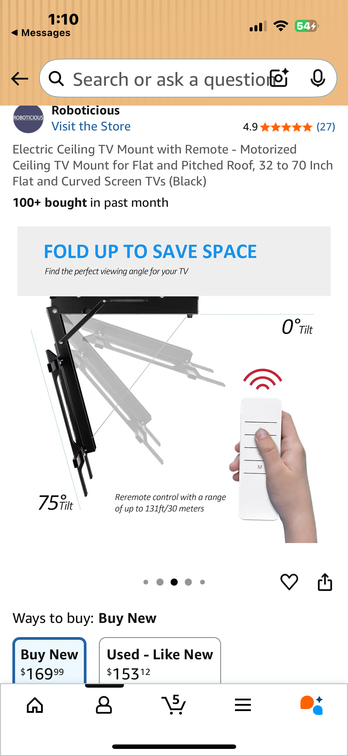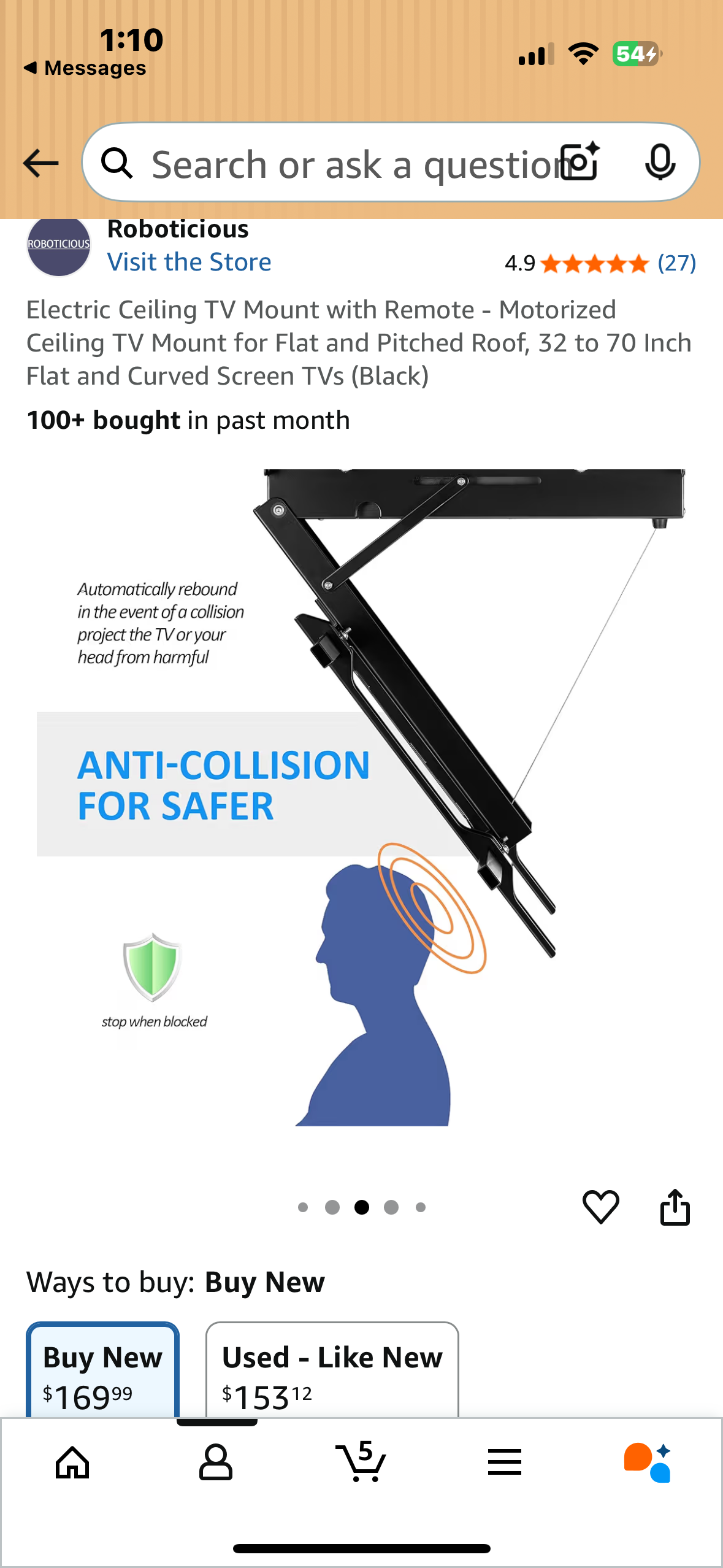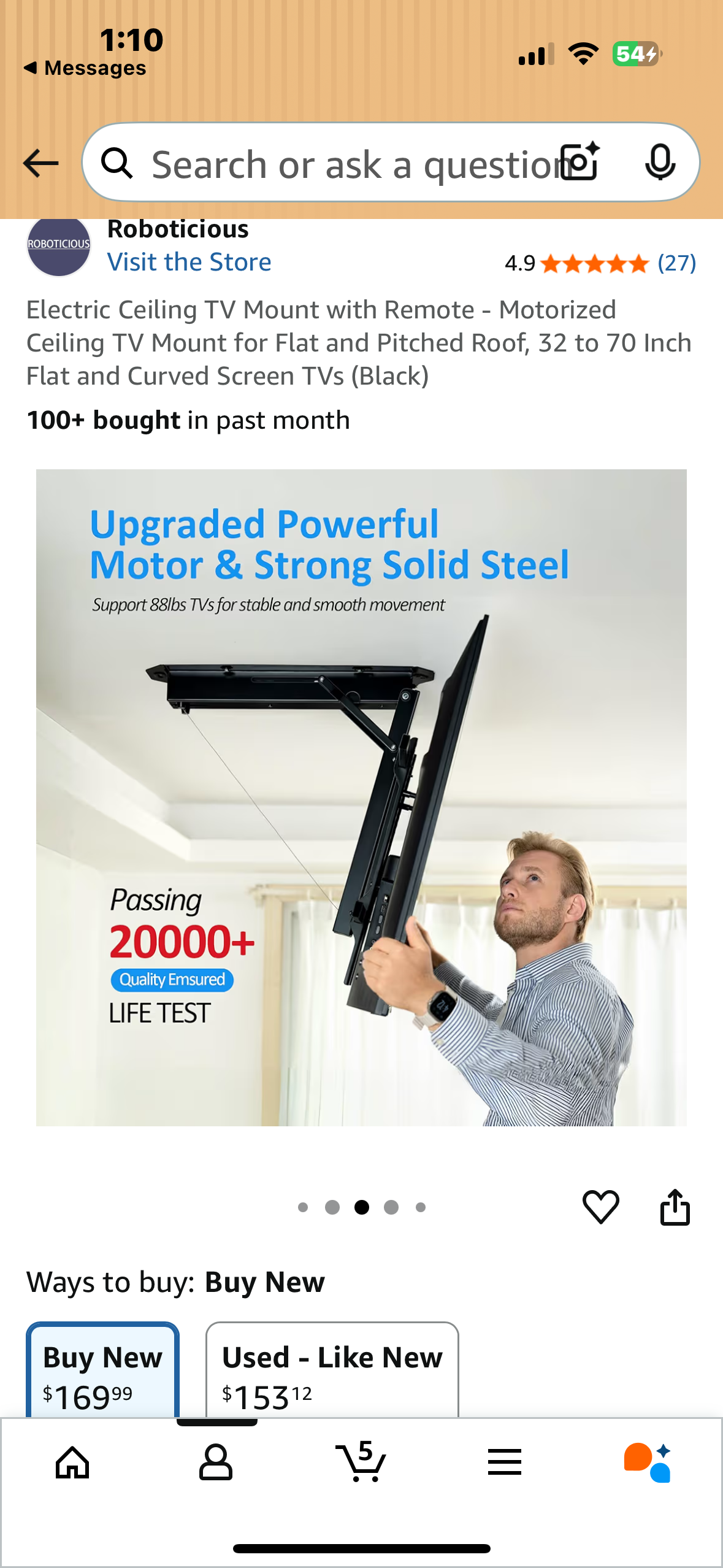 Electric Ceiling TV Mount with Remote - Motorized Ceiling TV Mount for Flat and Pitched Roof, 32 to 70 Inch Flat and Curved Screen TVs (Black) (L1075)