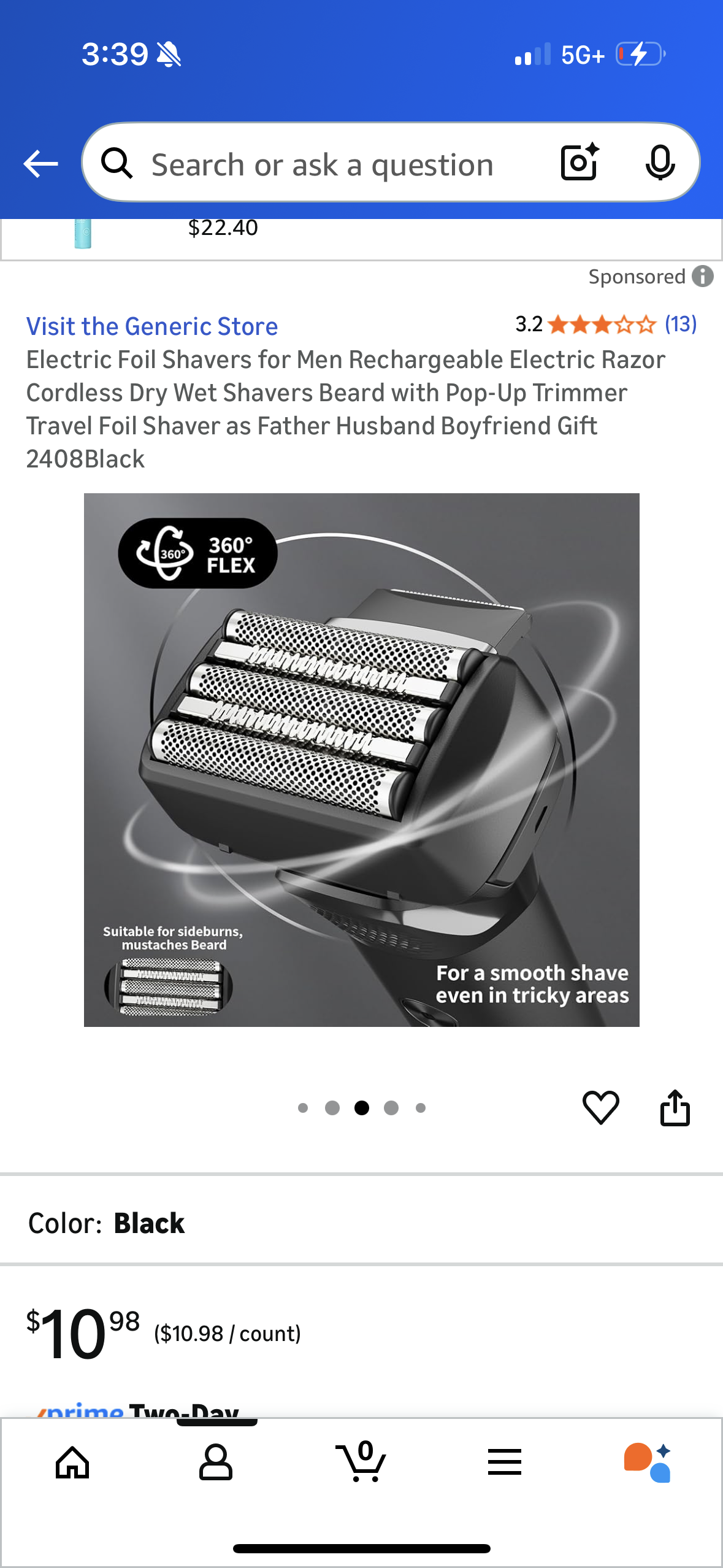 Electric Foil Shavers for Men Rechargeable Electric Razor Cordless Dry Wet Shavers Beard with Pop-Up Trimmer Travel Foil Shaver as Father Husband Boyfriend Gift 2408Black
