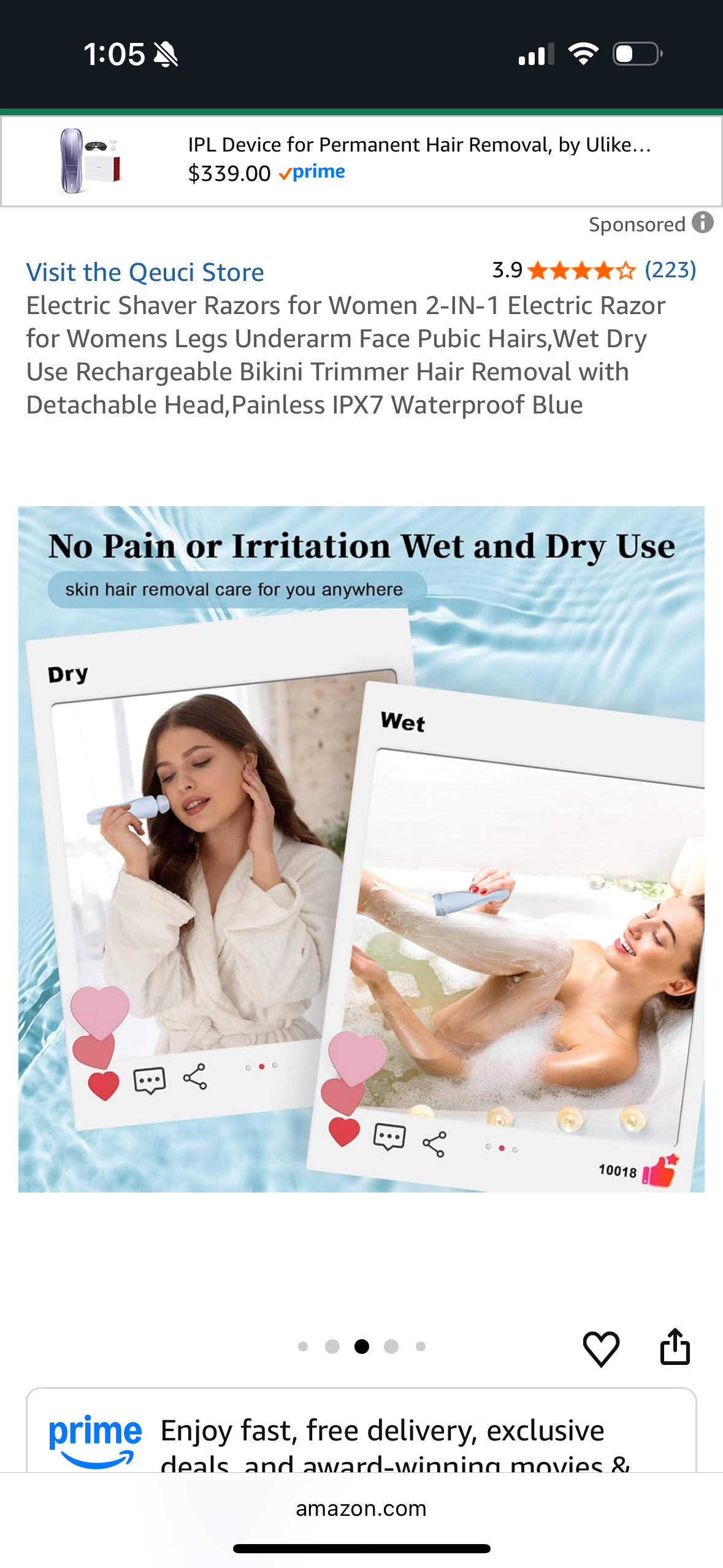 Electric Shaver Razors for Women 2-IN-1 Electric Razor for Womens Legs Underarm Face Pubic Hairs,Wet Dry Use Rechargeable Bikini Trimmer Hair Removal with Detachable Head,Painless IPX7 Waterproof Blue