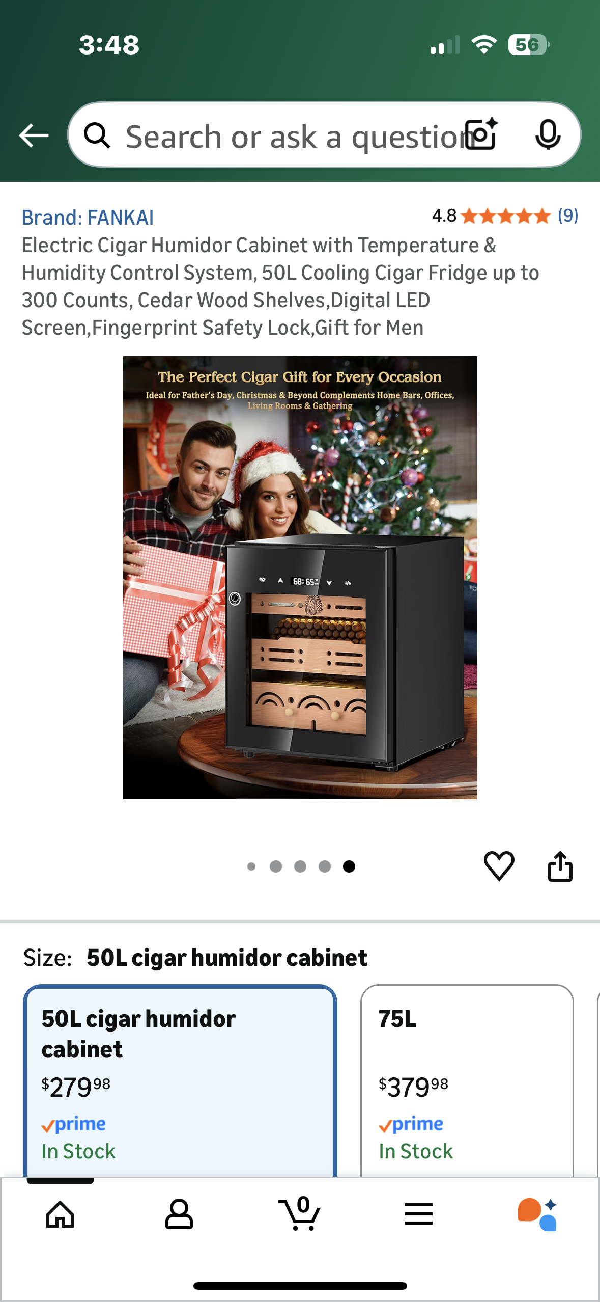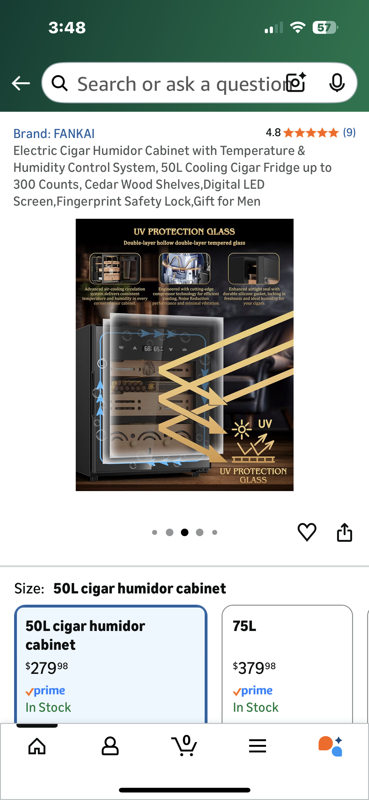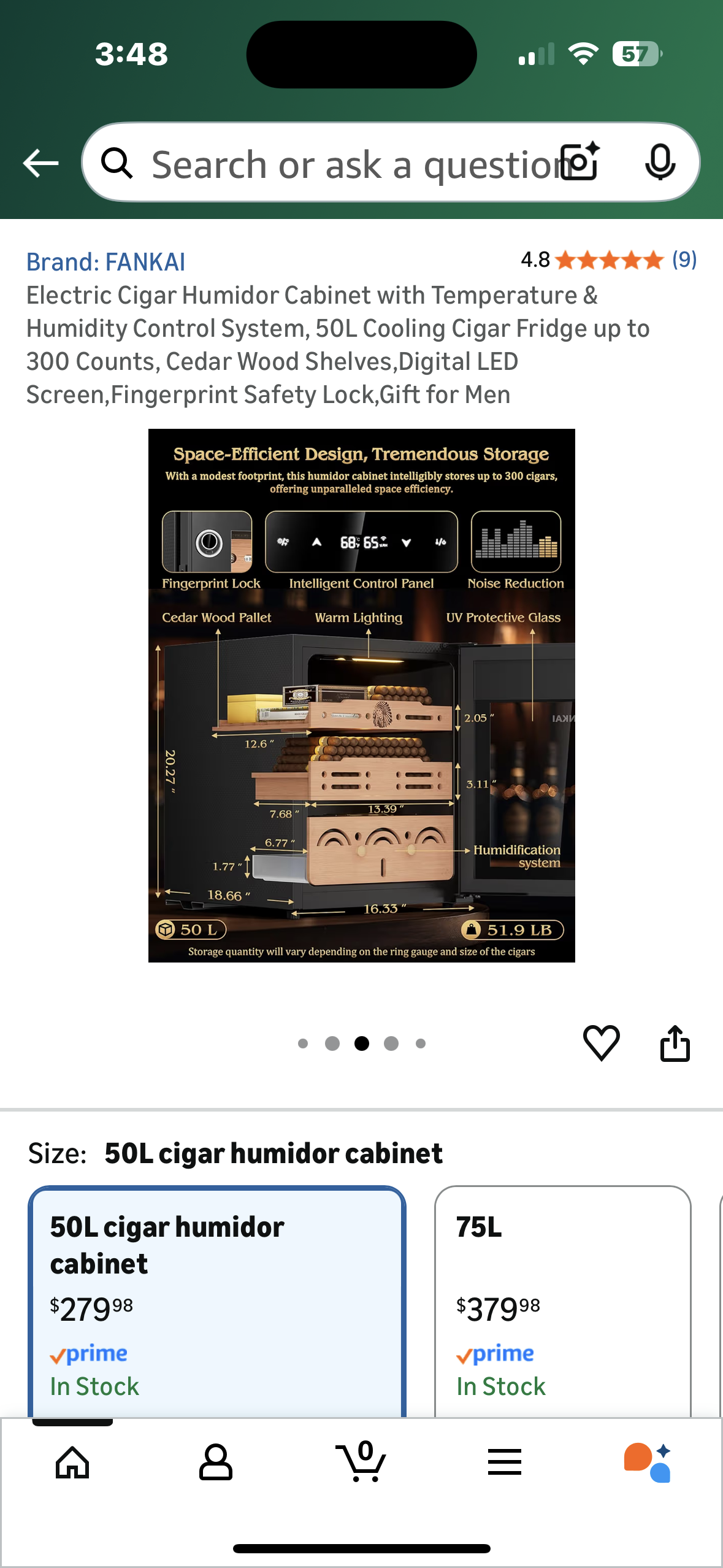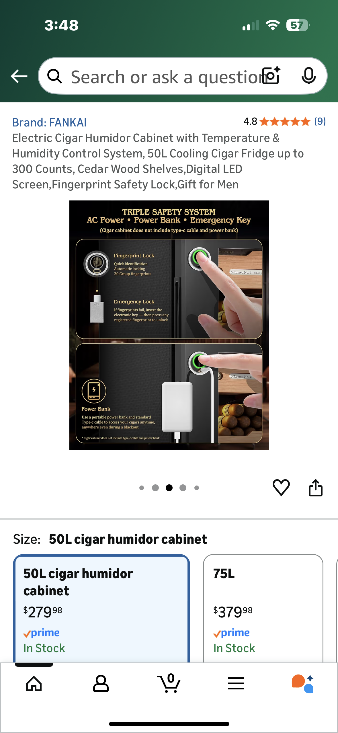 FANKAI Electric Humidor Cigar Cabinet with Temperature & Humidity Control System, 50L Cooling Cigar Fridge up to 300 Count, Cedar Wood Shelves,Digital LED Screen, Fingerprint Safety Lock (R751)