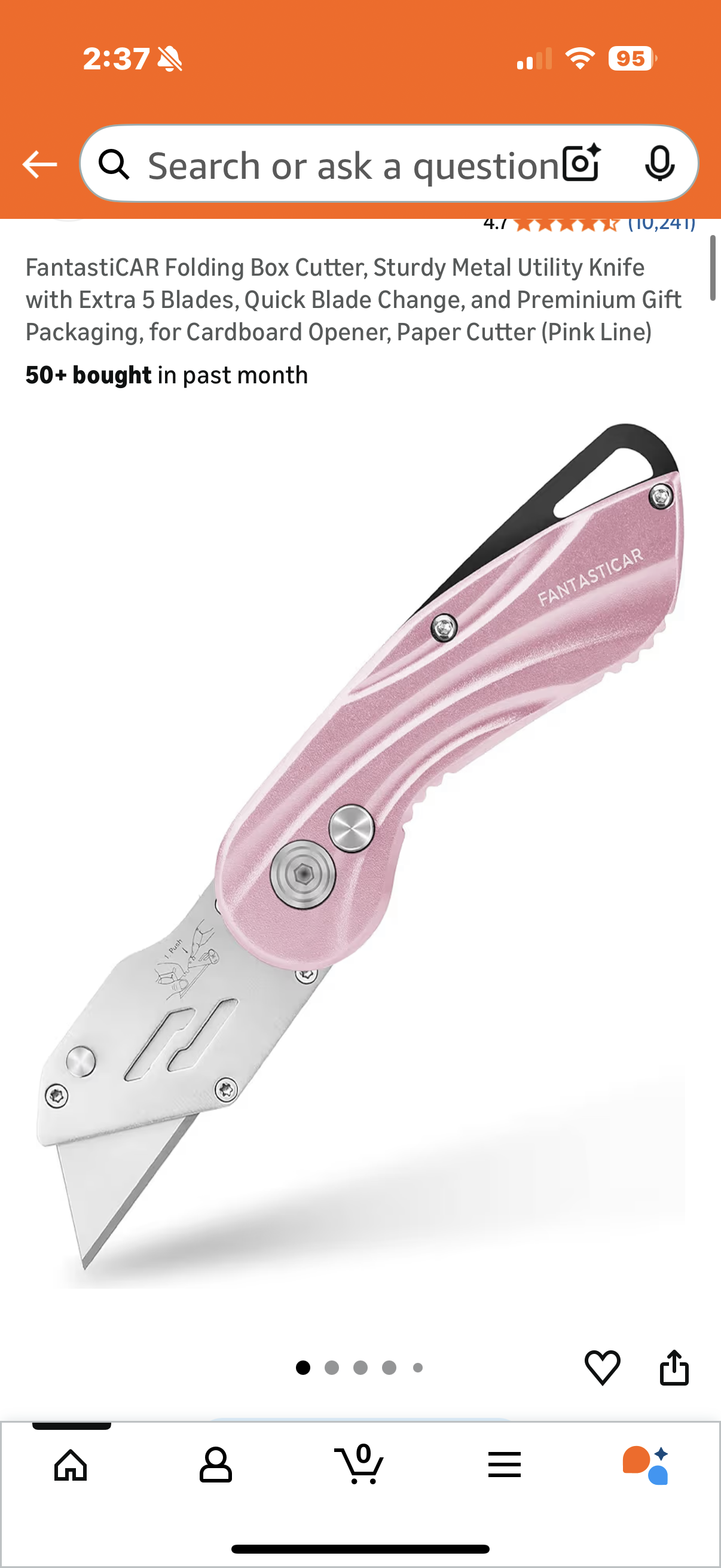 Folding Box Cutter, Sturdy Metal Utility Knife with Extra 5 Blades, Quick Blade Change, and Preminium Gift Packaging, for Cardboard Opener, Paper Cutter (Pink Line)