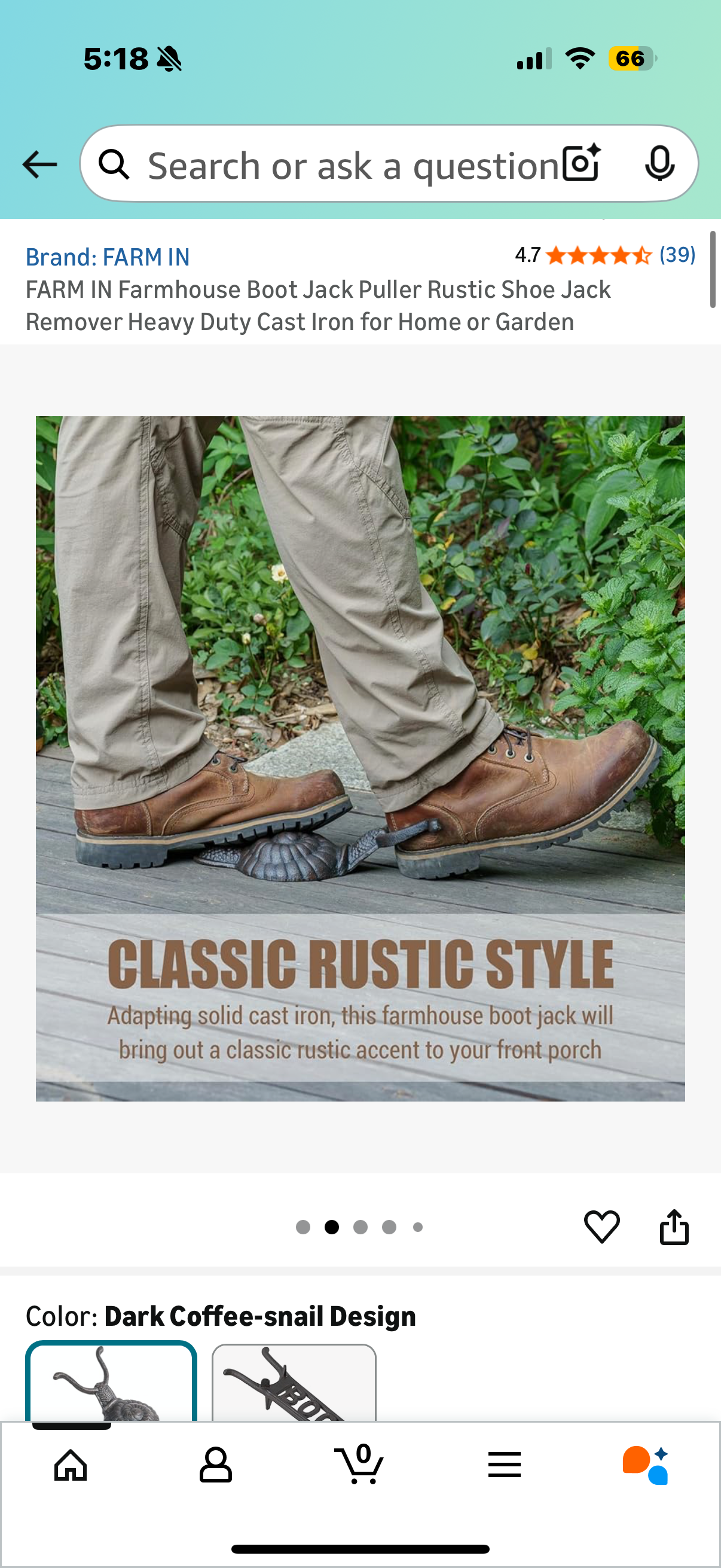 Snail Cast Iron Decoration - also can be used as Farmhouse Boot Jack Puller Rustic Shoe Jack Remover Heavy Duty Cast Iron for Home or Garden