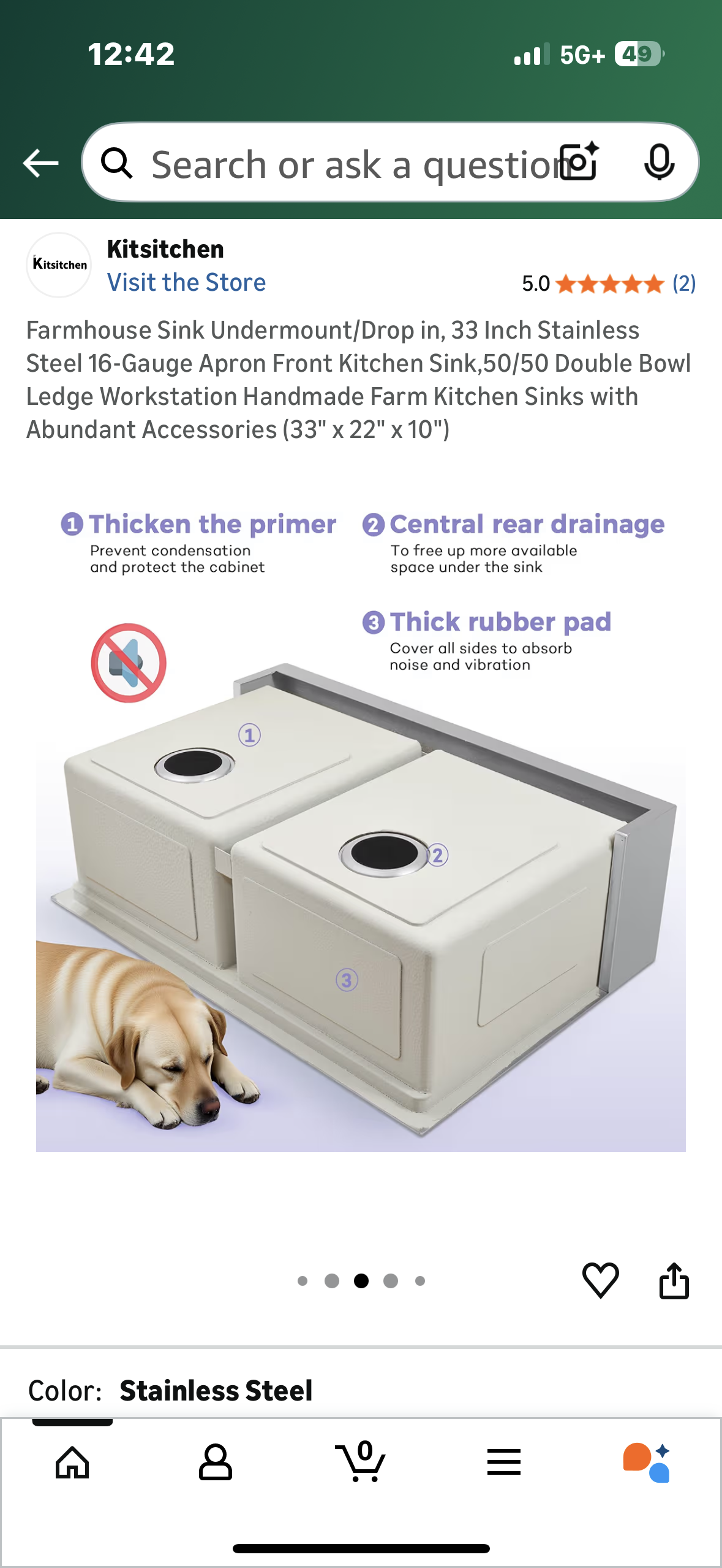 Farmhouse Sink, Undermount/Drop in, 33” Stainless Steel 16-Gauge Kitchen Sink, 50/50 Double Bowl Ledge Workstation, Handmade Farm Kitchen Sink with Accessories (33" x 22" x 10") (R749)