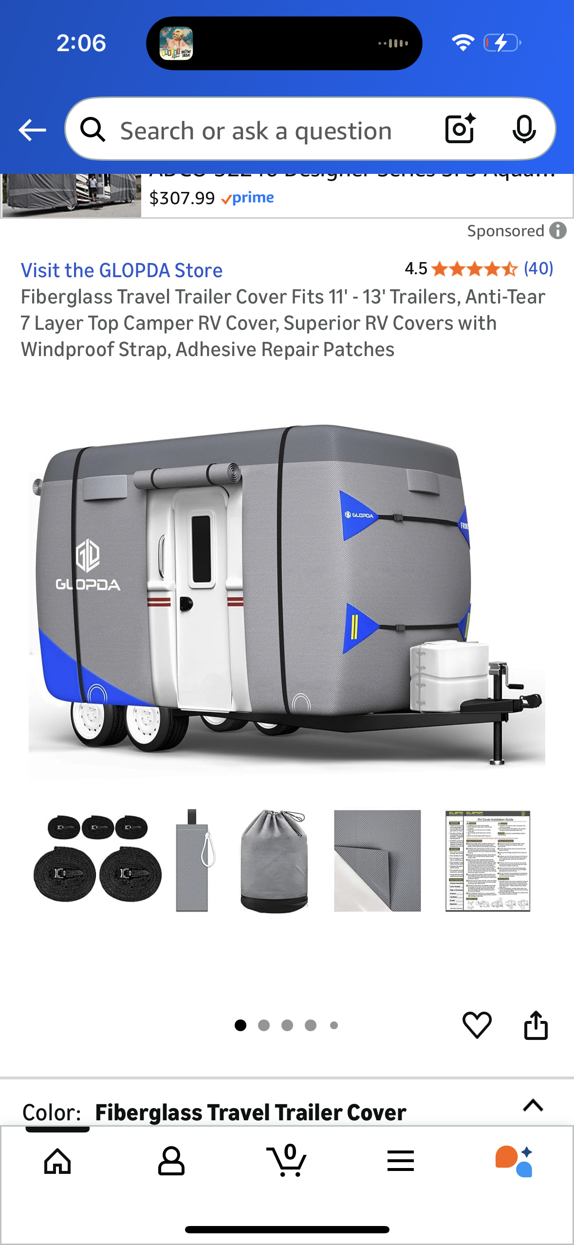Fiberglass Travel Trailer Cover Fits 11' - 13' Trailers, Anti-Tear 7 Layer Top Camper RV Cover, Superior RV Covers with Windproof Strap, Adhesive Repair Patches