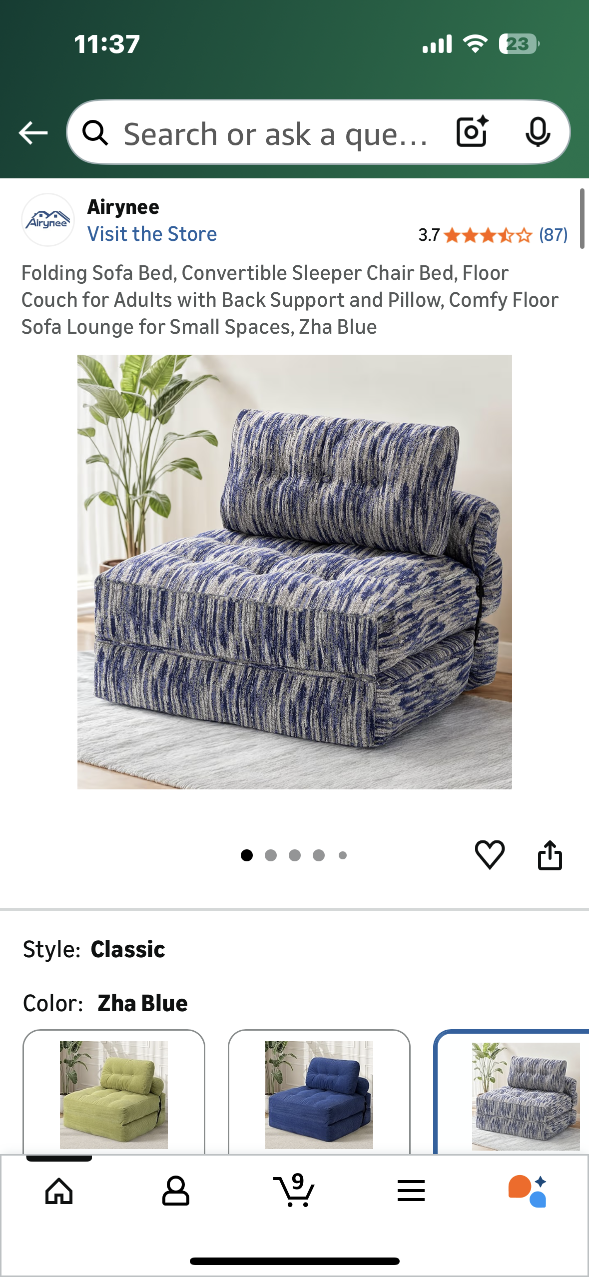 Folding Sofa Bed, Convertible Sleeper Chair Bed, Floor Couch for Adults with Back Support and Pillow, Comfy Floor Sofa Lounge for Small Spaces, Zha Blue (L1103)