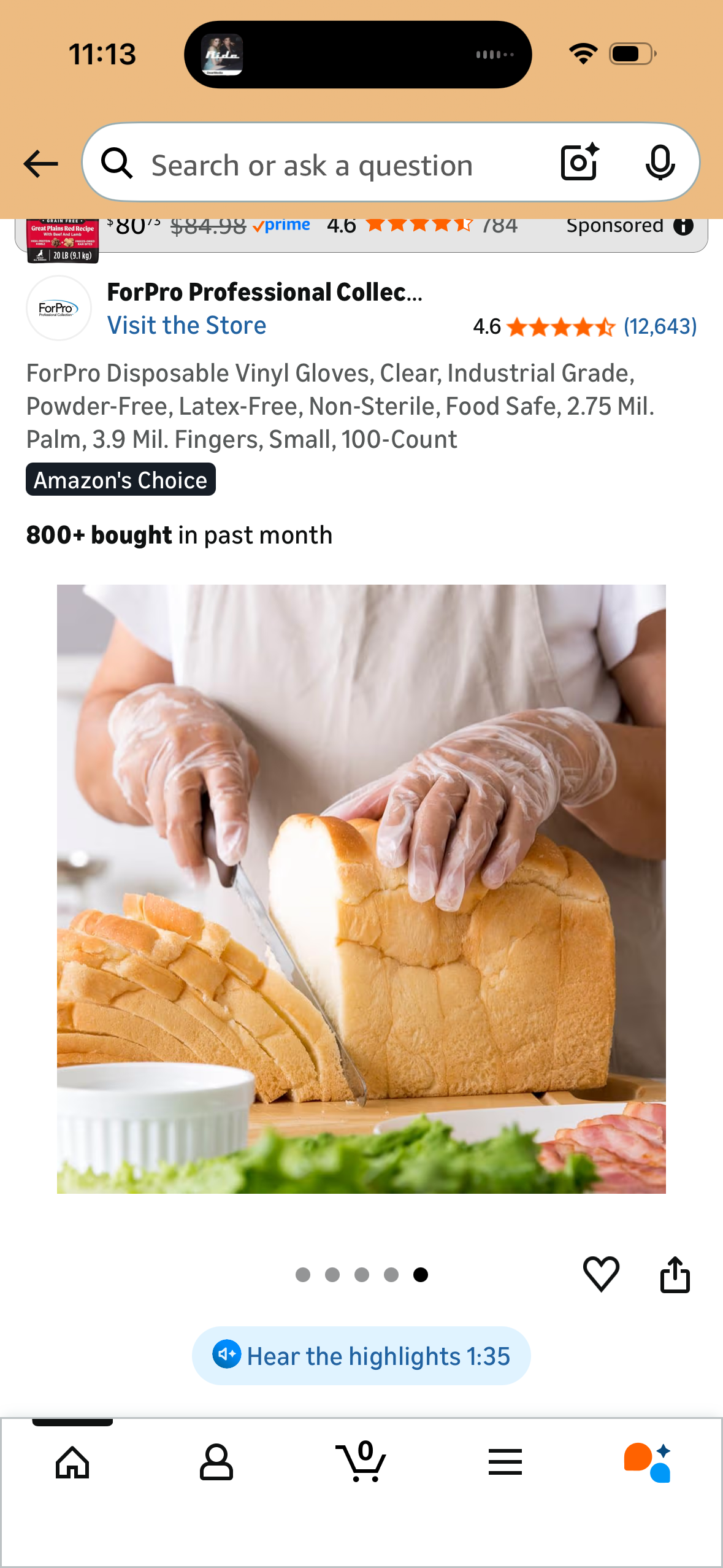 ForPro Disposable Vinyl Gloves, Clear, Industrial Grade, Powder-Free, Latex-Free, Non-Sterile, Food Safe, 2.75 Mil. Palm, 3.9 Mil. Fingers, Small, 100-Count