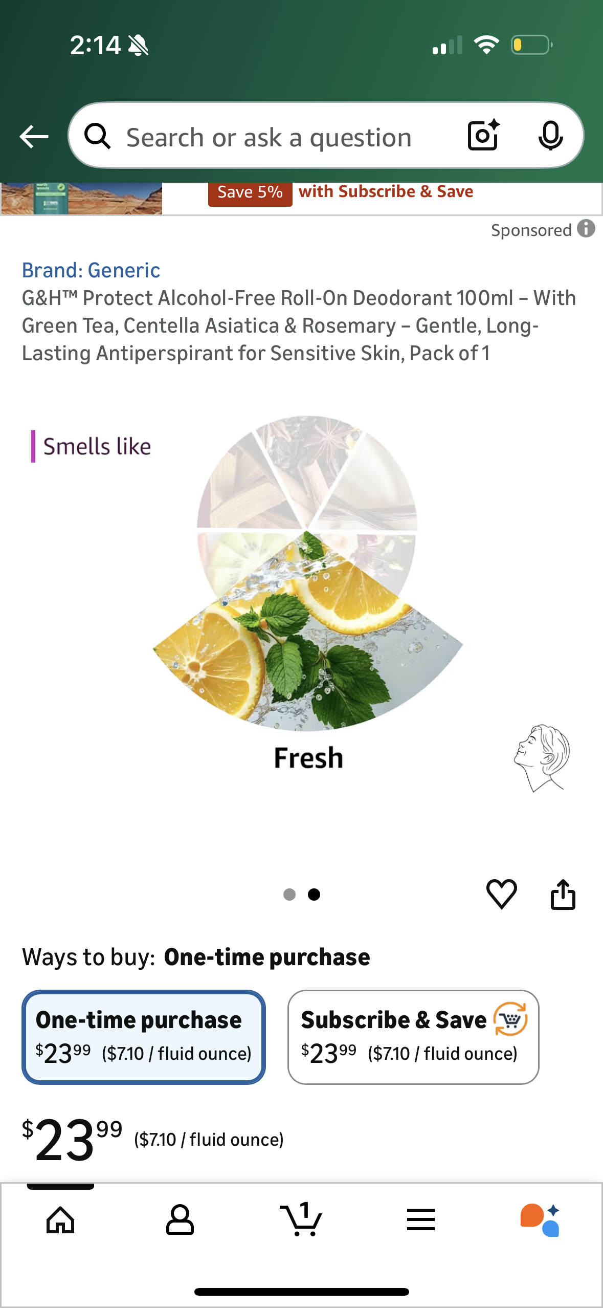 G&H™ Protect Alcohol-Free Roll-On Deodorant 100ml – With Green Tea, Centella Asiatica & Rosemary – Gentle, Long-Lasting Antiperspirant for Sensitive Skin, Pack of 1
