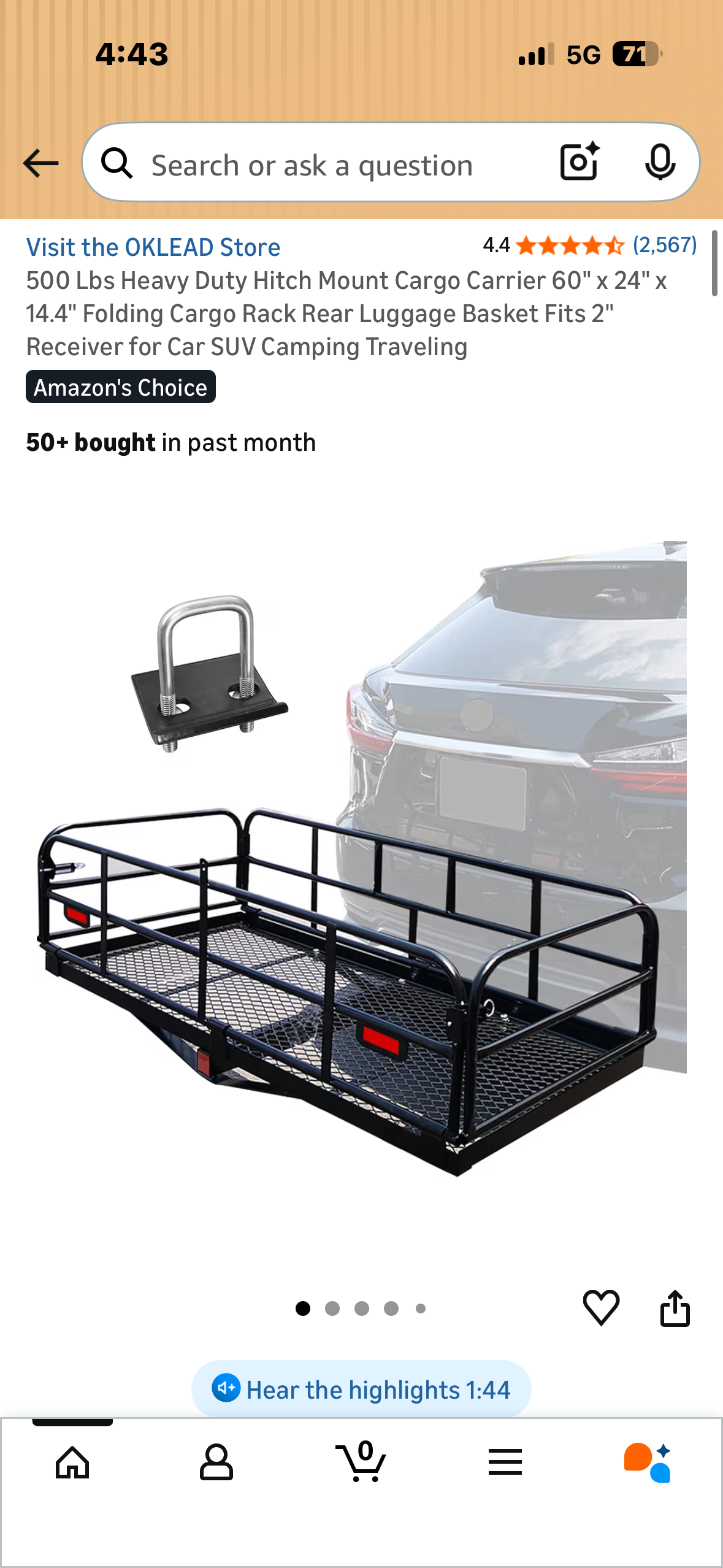 500 Lbs Heavy Duty Hitch Mount Cargo Carrier, 60"×24"x14.4" Folding Cargo Rack, Rear Luggage Basket, Fits 2" Receiver for Car, SUV, Camping, Traveling (G1023)