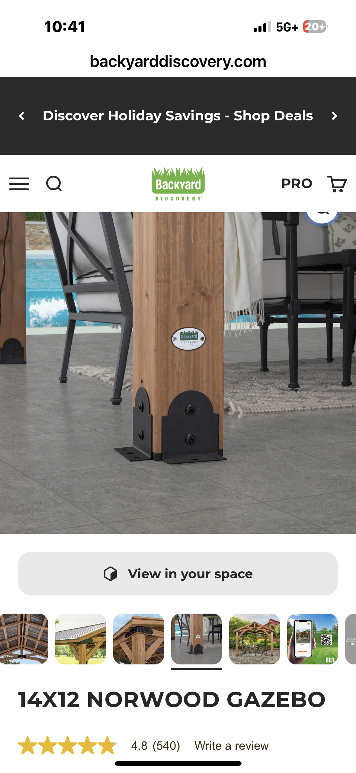 Backyard Discovery Norwood 14' x 12’ Cedar Wood Outdoor Gazebo Pavilion with Snow Support, Wind Resistance, Shade for Garden, Patio, Deck, Entertaining (G945)
